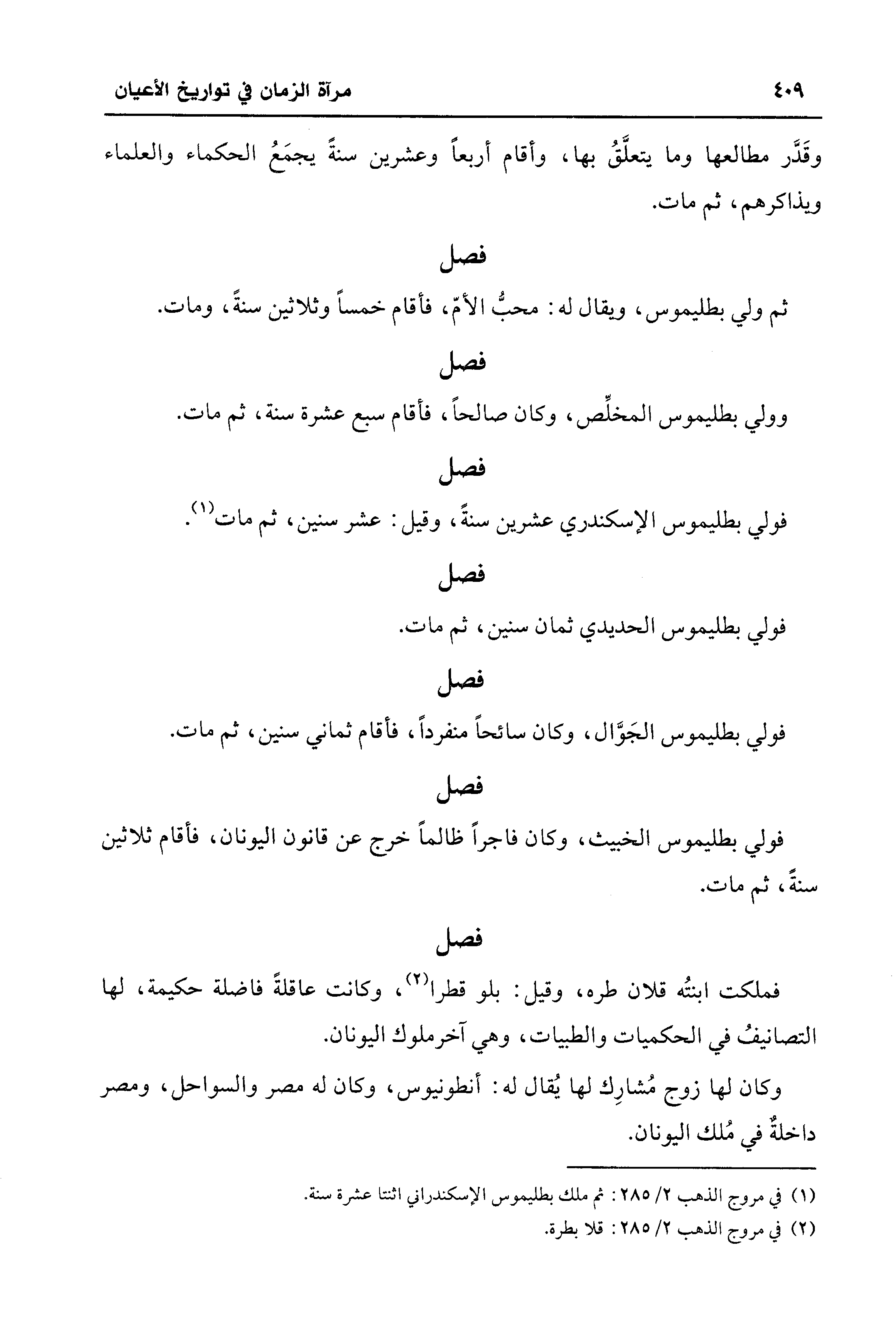 (¬1) في مروج الذهب 2/ 285: ثم ملك بطليموس الإسكندراني اثنتا عشرة سنة.