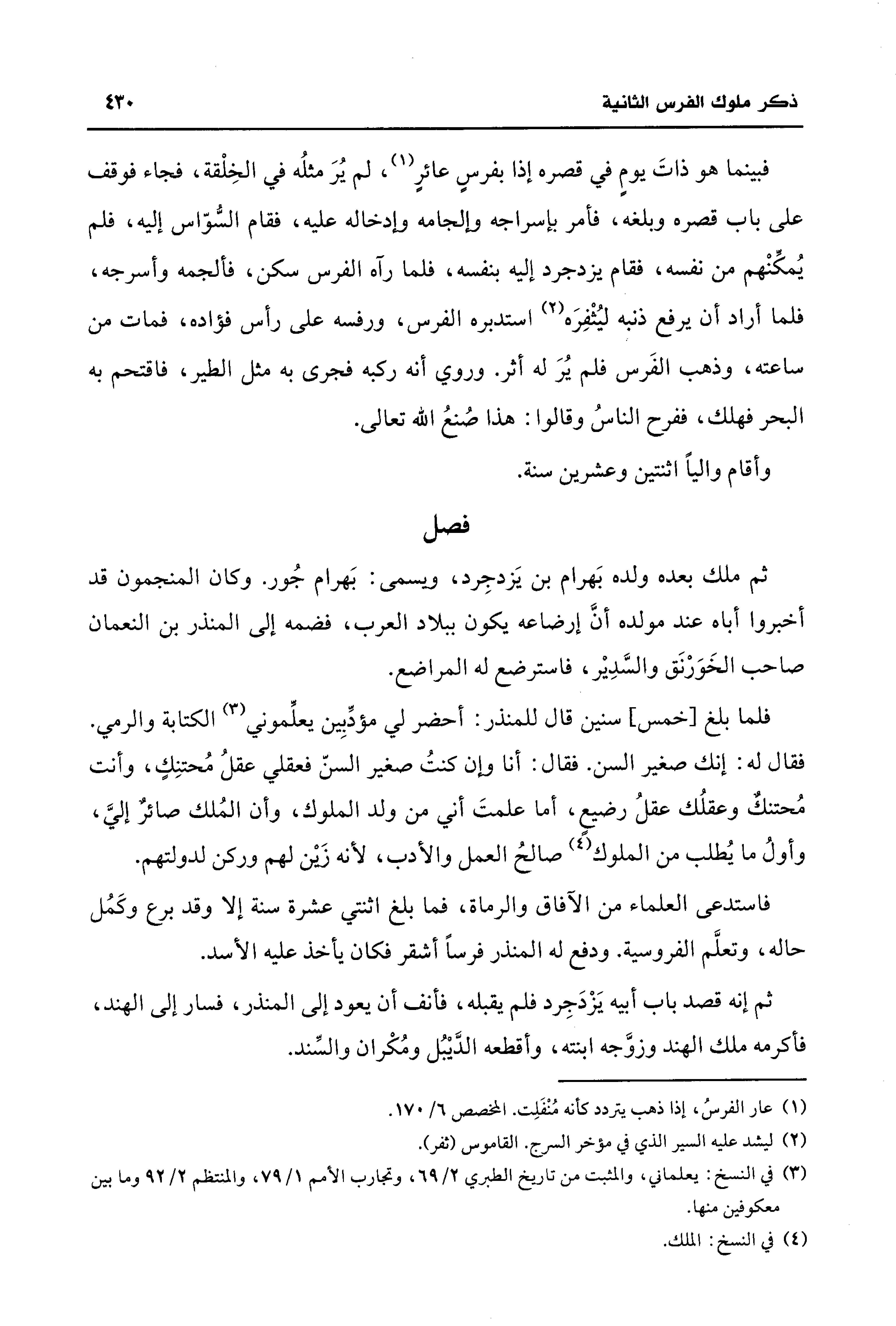 فلما بلغ [خمس] سنين قال للمنذر: أحضر لي مؤدِّبِين يعلِّموني (¬3) الكتابة والرمي. فقال له: إنك صغير السن. فقال: أنا وإن كنتُ صغير السنّ فعقلي عقلُ مُحتنِكٍ، وأنت مُحتنك وعقلُك عقلُ رضيع، أما علمتَ أني من ولد الملوك، وأن المُلك صائر إليَّ، وأولُ ما يُطلب من الملوك (¬4) صالحُ العمل والأدب، لأنه زَيْن لهم وركن لدولتهم.