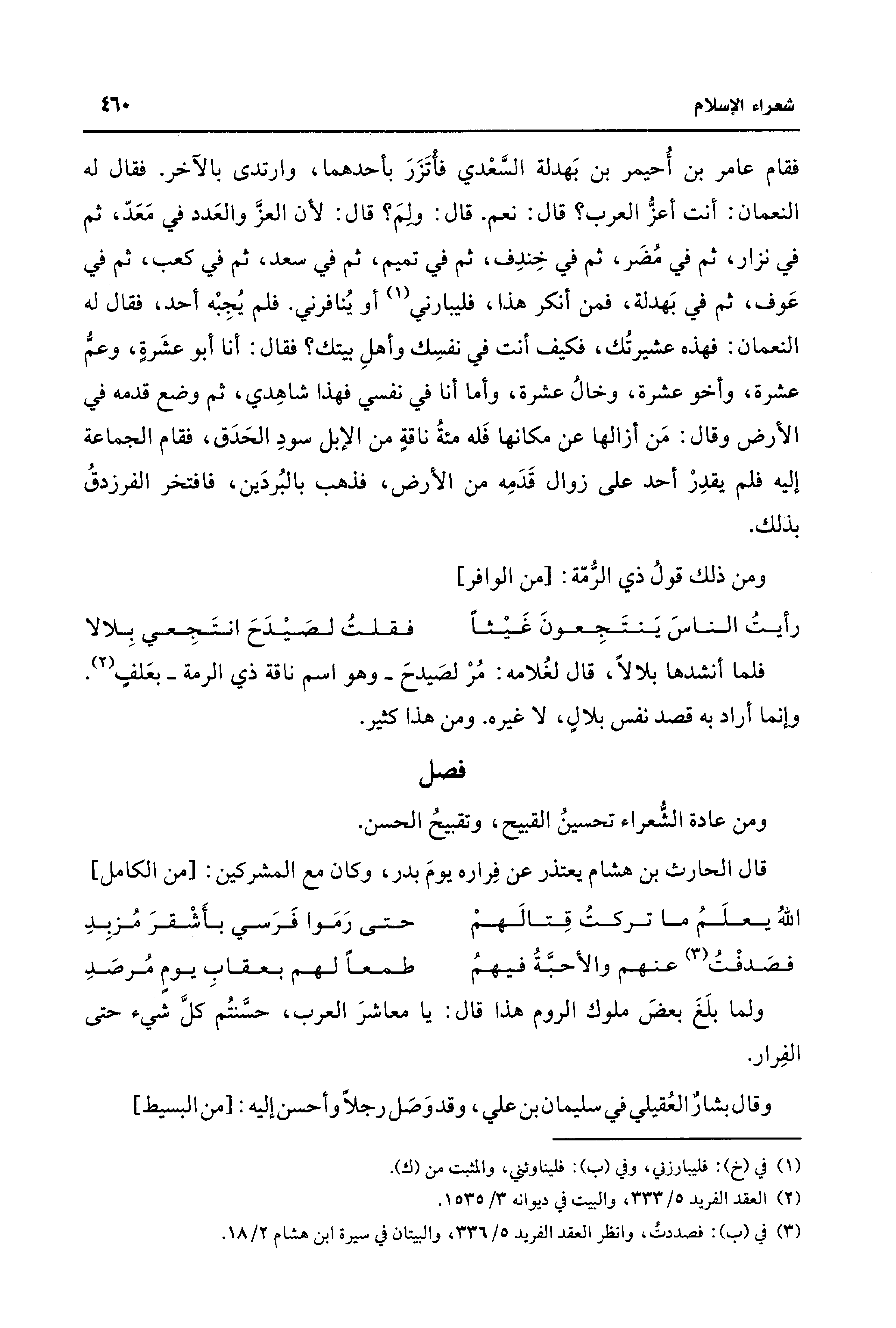(¬2) العقد الفريد 5/ 333، والبيت في ديوانه 3/ 1535.