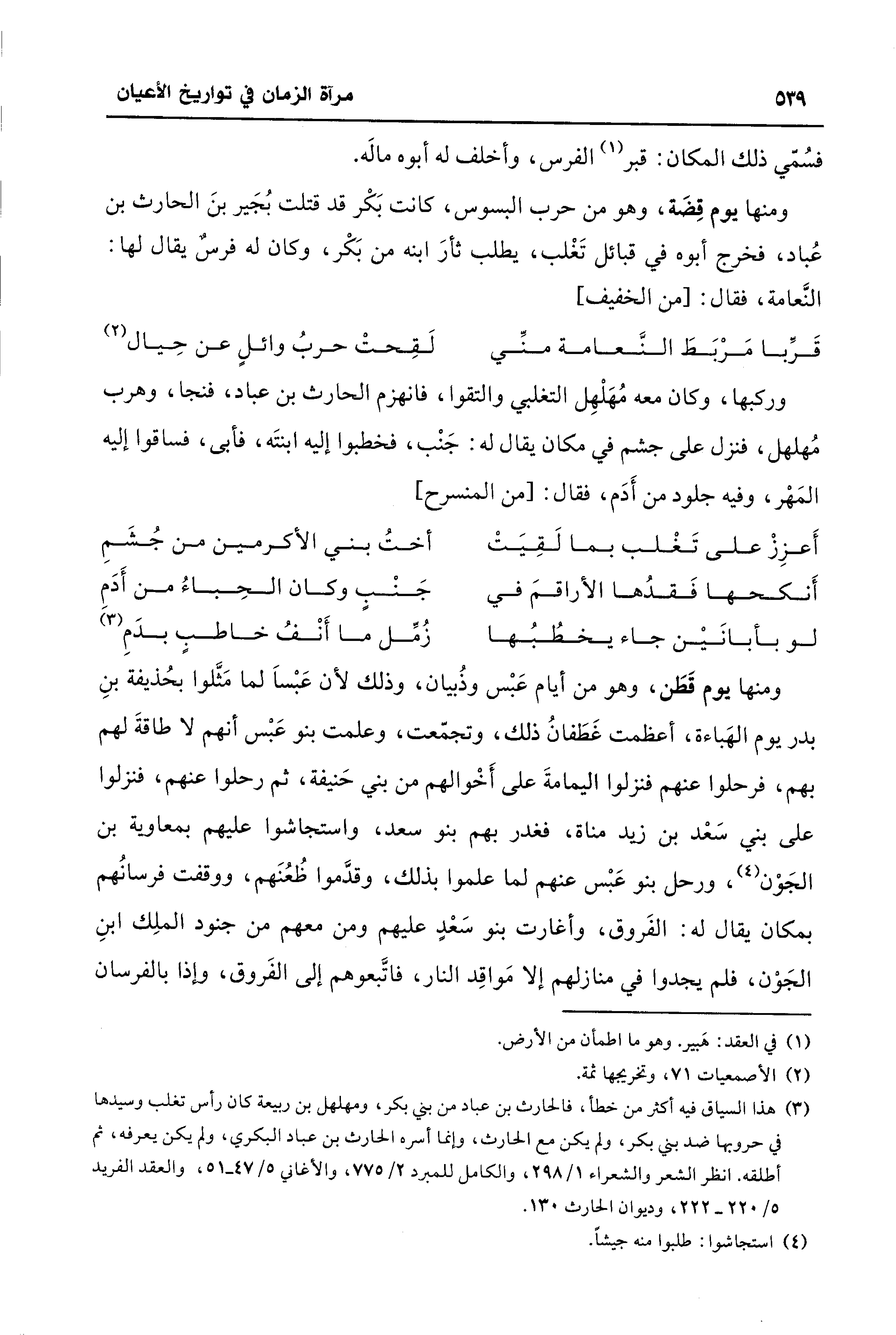 (¬3) هذا السياق فيه أكثر من خطأ، فالحارث بن عباد من بني بكر، ومهلهل بن ربيعة كان رأس تغلب وسيدها في حروبها ضد بني بكر، ولم يكن مع الحارث، وإنما أسره الحارث بن عباد البكري، ولم يكن يعرفه، ثم أطلقه. انظر الشعر والشعراء 1/ 298، والكامل للمبرد 2/ 775، والأغاني 5/ 47 - 51، والعقد الفريد 5/ 220 - 222، وديوان الحارث 130.