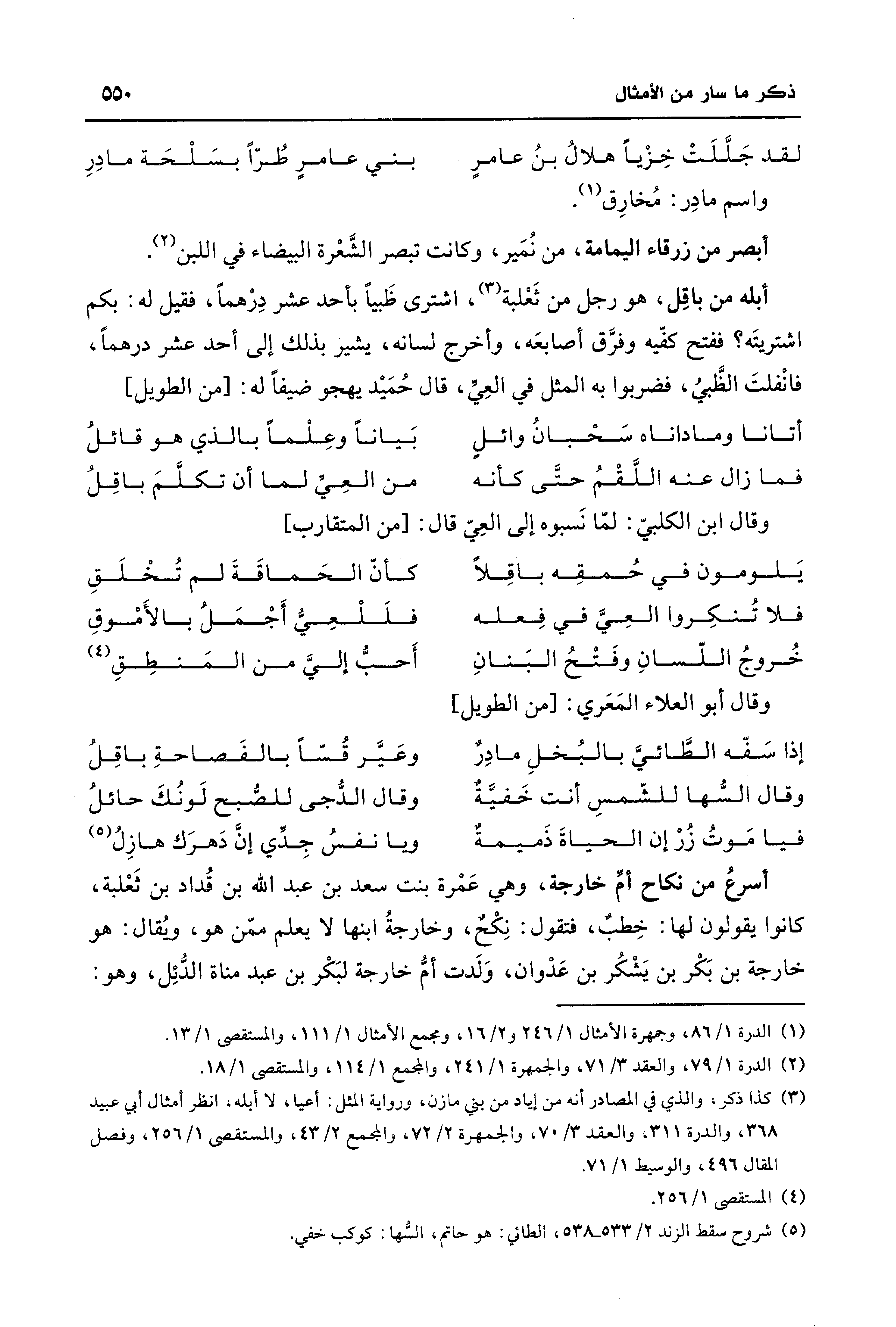 (¬2) الدرة 1/ 79، والعقد 3/ 71، والجمهرة 1/ 241، والمجمع 1/ 114، والمستقصى 1/ 18.