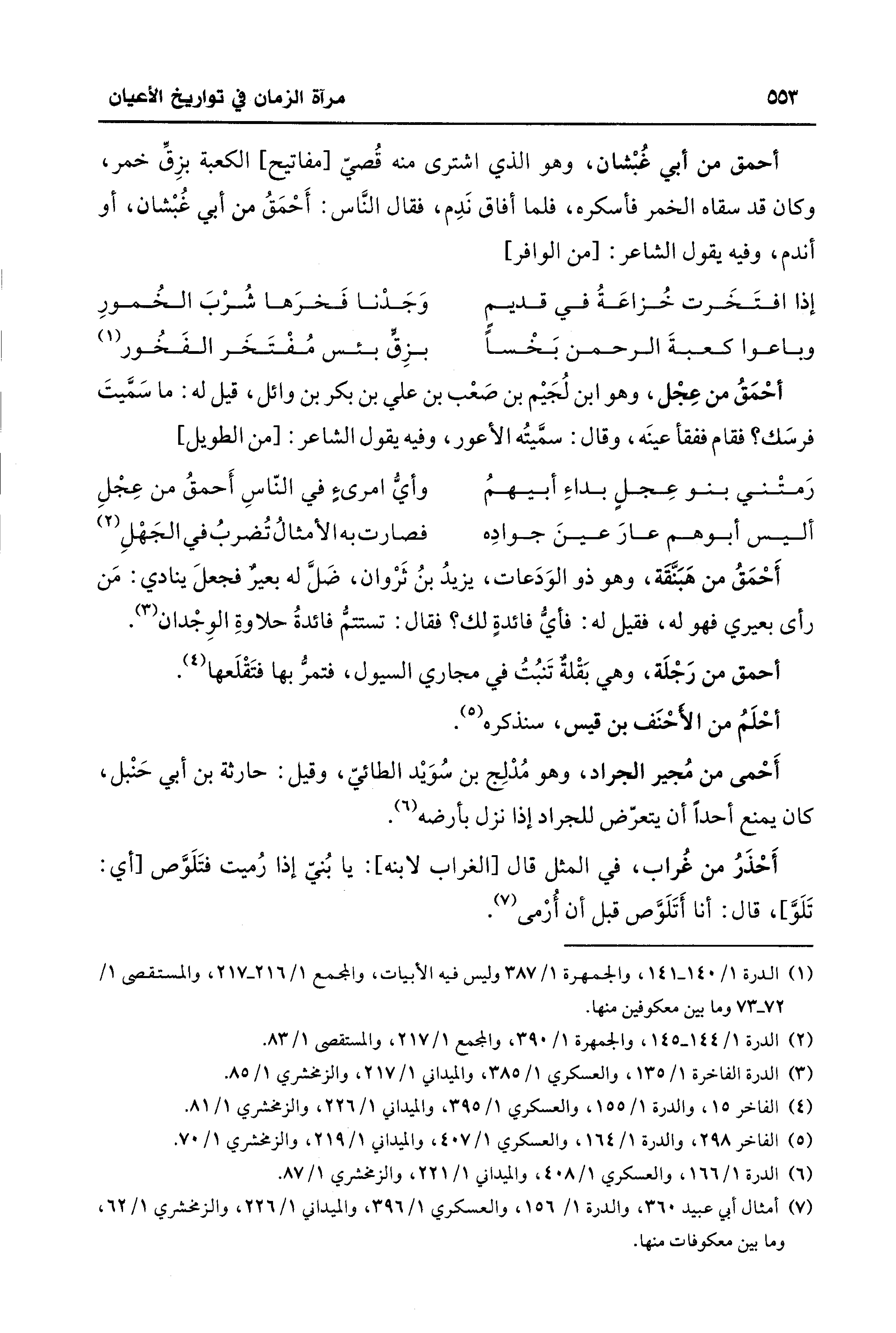 (¬5) الفاخر 298، والدرة 1/ 164، والعسكري 1/ 407، والميداني 1/ 219، والزمخشري 1/ 70.