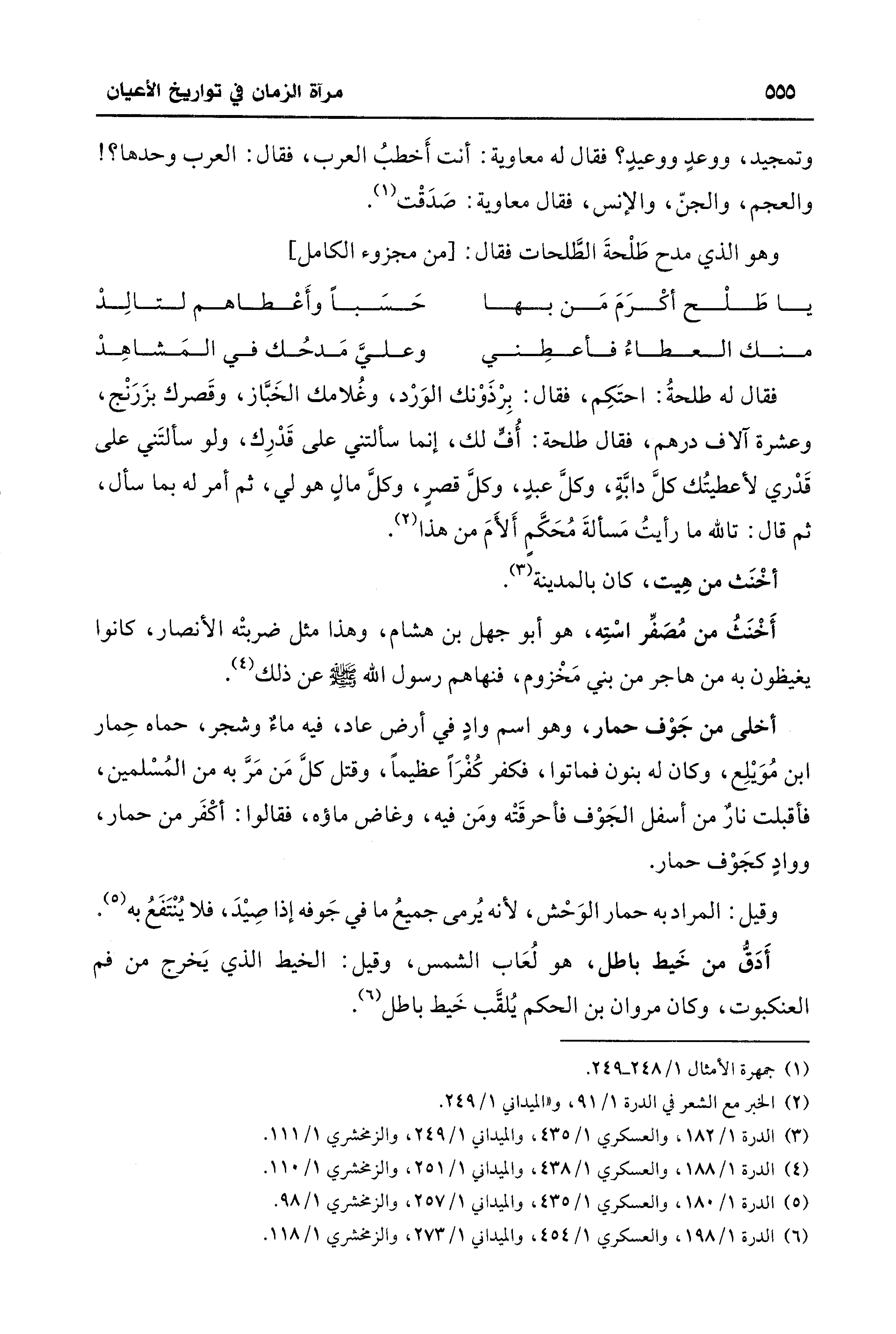 (¬5) الدرة 1/ 180، والعسكري 1/ 435، والميداني 1/ 257، والزمخشري 1/ 98.