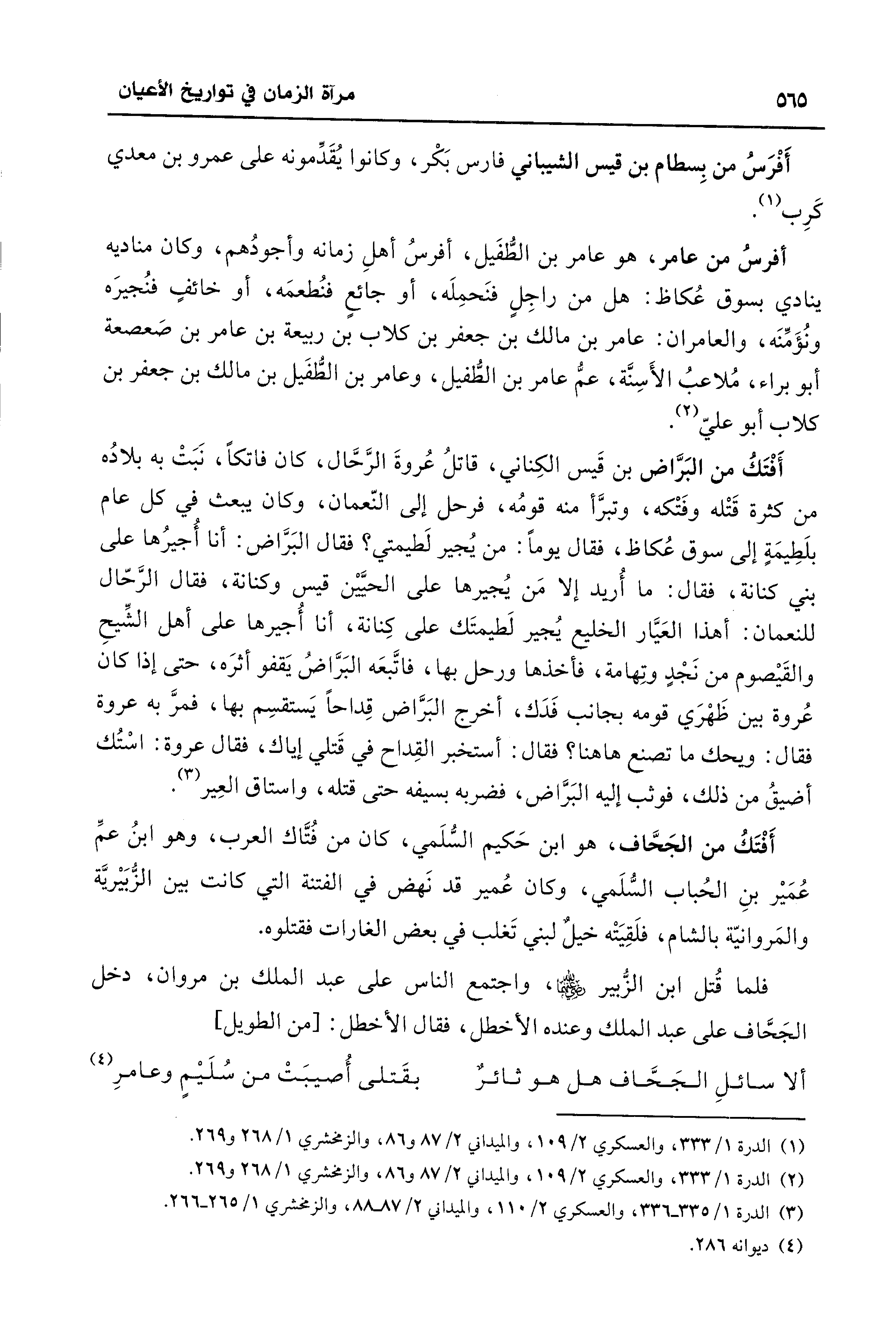 ألا سائلِ الجَحَّاف هل هو ثائرٌ ... بقَتلى أُصيبَتْ من سُلَيْمٍ وعامرِ (¬4)