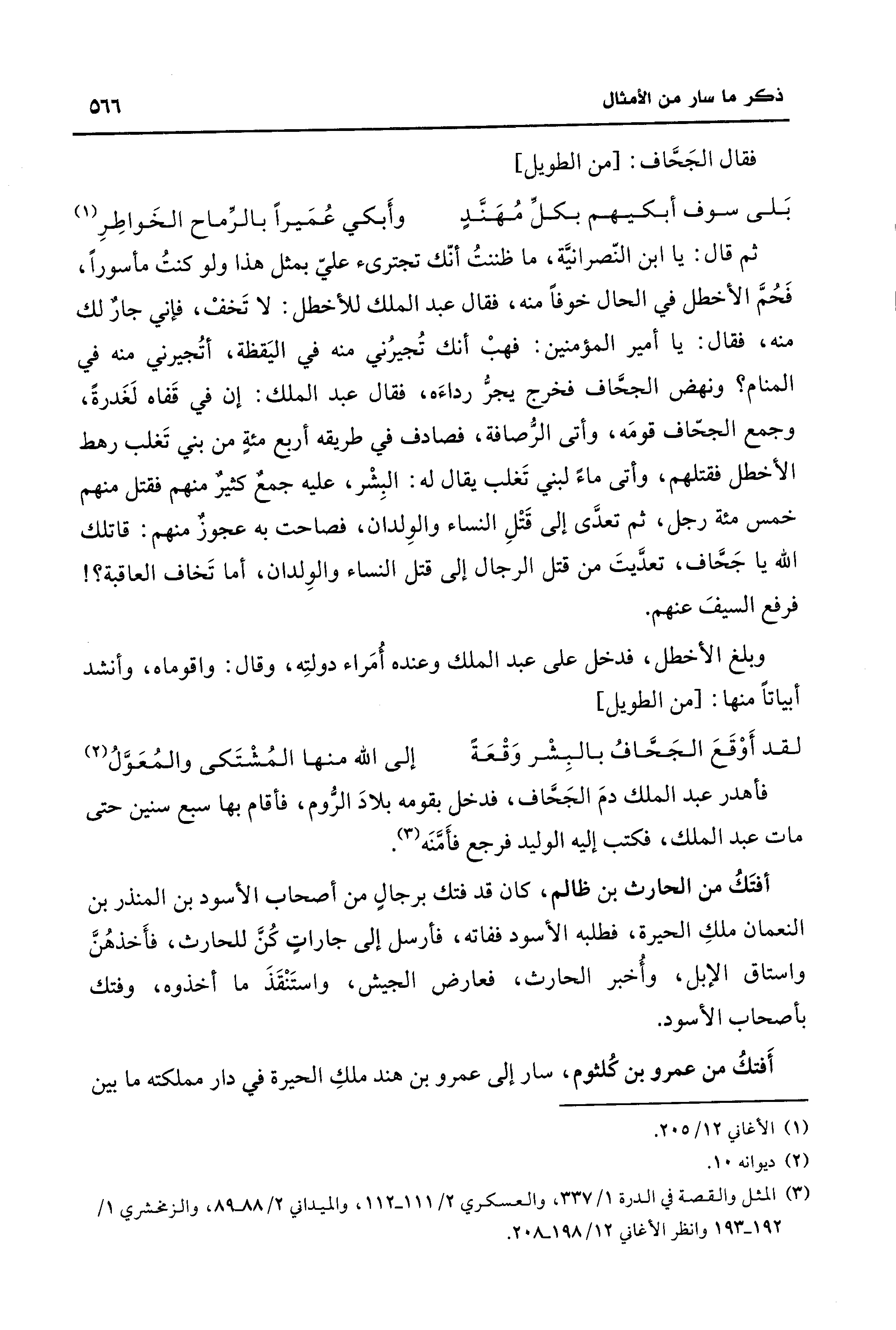 (¬3) المثل والقصة في الدرة 1/ 337، والعسكري 111/ 2 - 112، والميداني 2/ 88 - 81، والزمخشري 1/ 192 - 193 وانظر الأغاني 12/ 198 - 208.