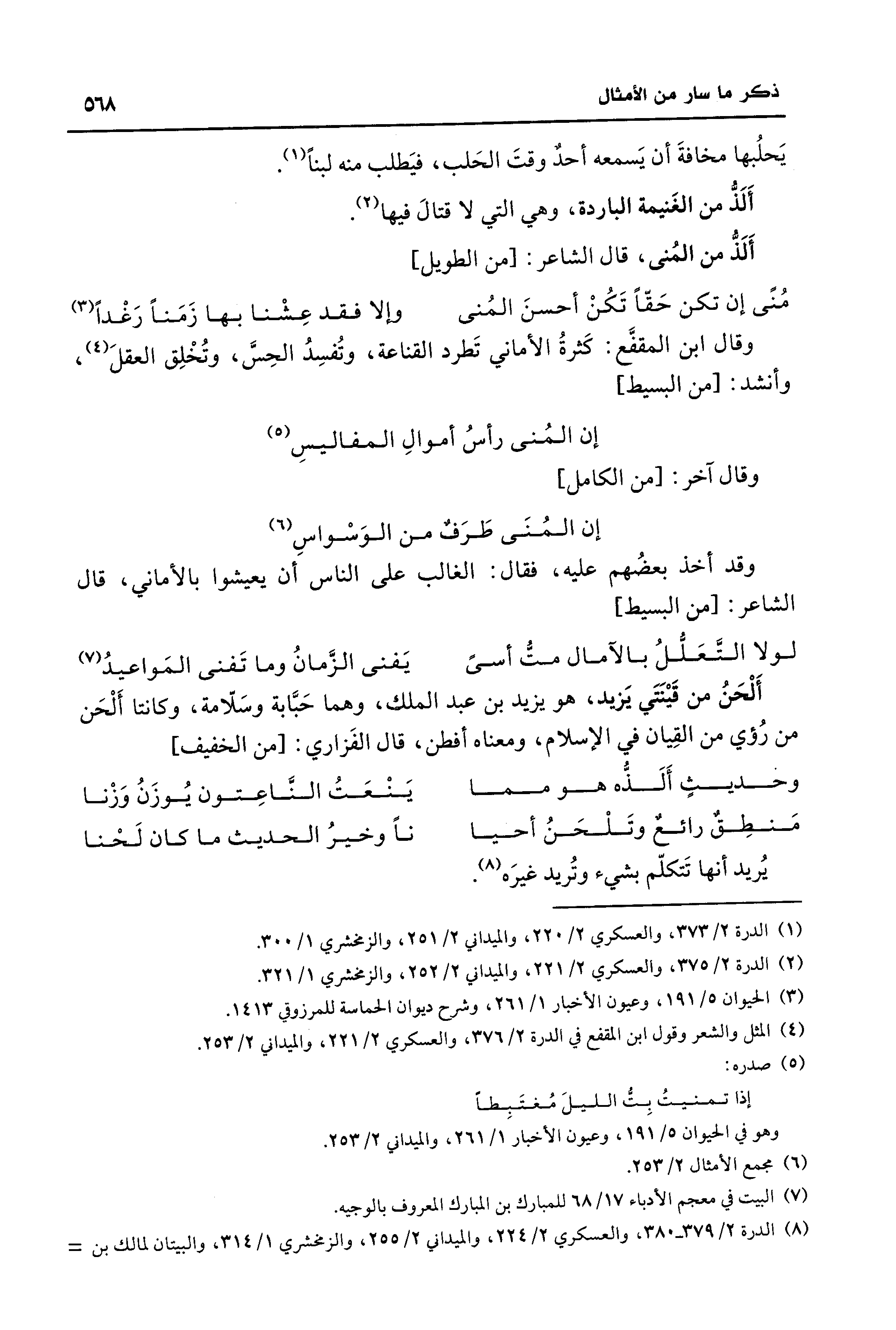 (¬8) الدرة 2/ 379 - 380، والعسكري 2/ 224، والميداني 2/ 255، والزمخشري 1/ 314، والبيتان لمالك بن =