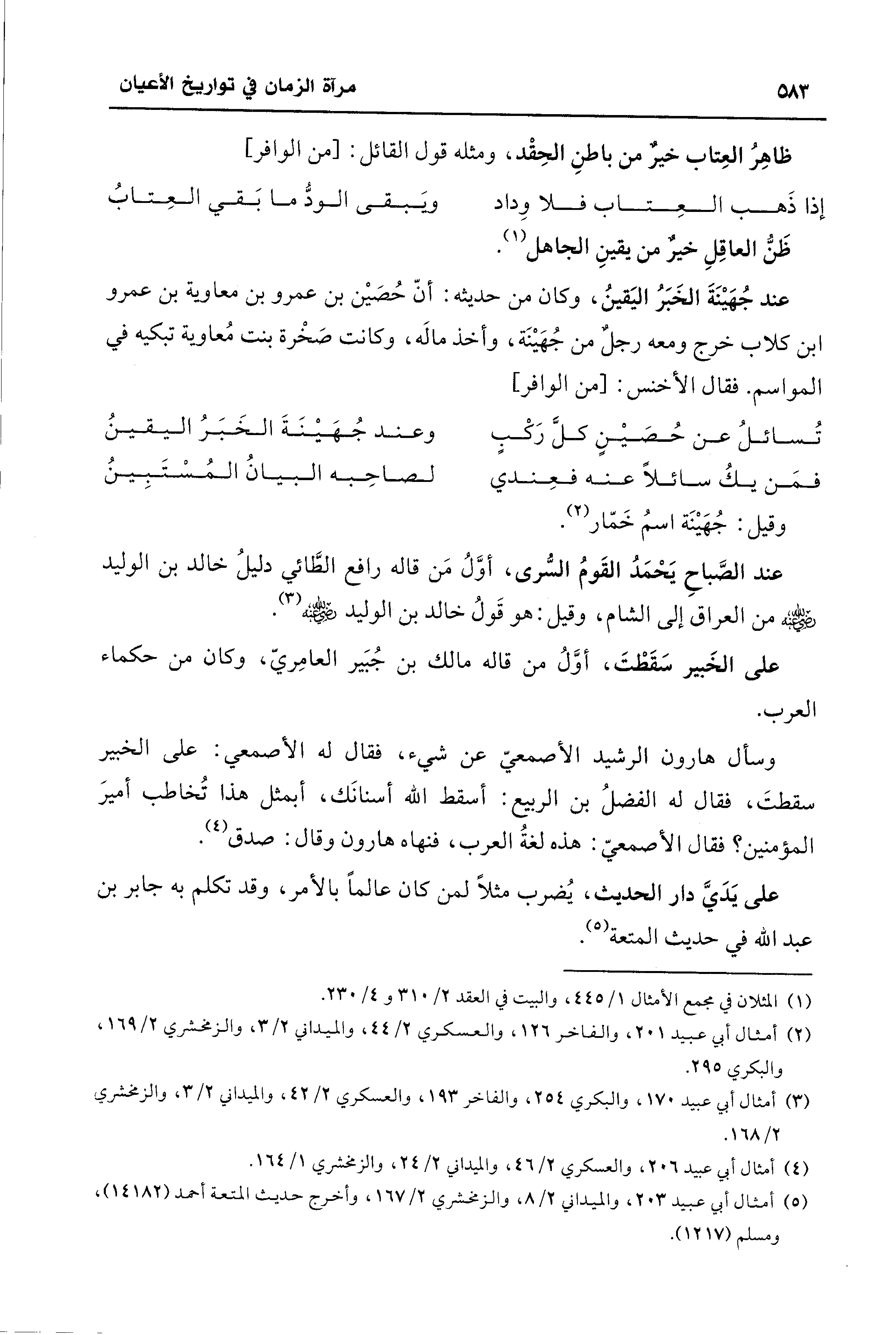 (¬4) أمثال أبي عبيد 206، والعسكري 2/ 46، والميداني 2/ 24، والزمخشري 1/ 164.