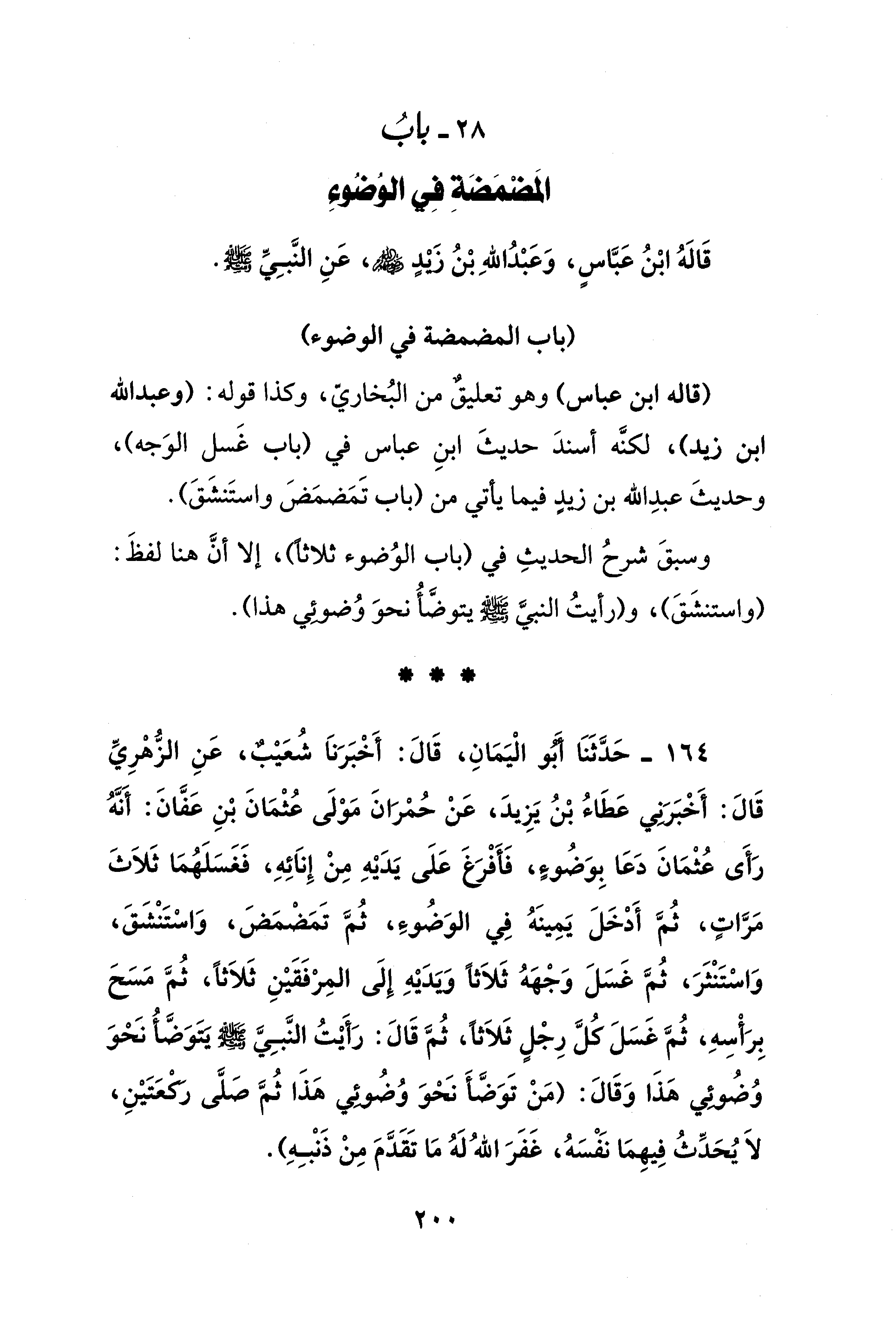 28 - بابُ المَضْمَضَةِ فِي الوُضُوءِ