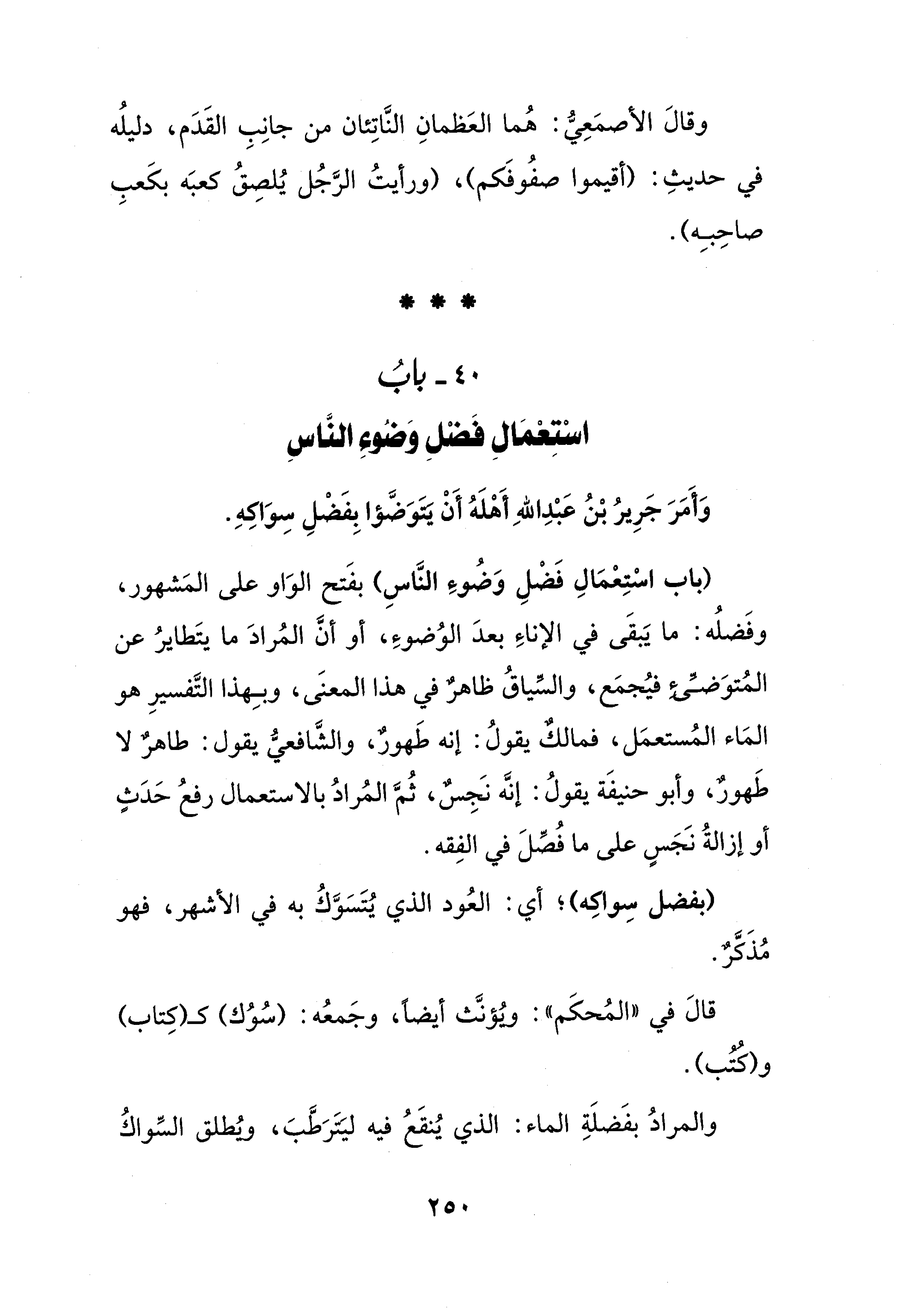 40 - بابُ اسْتِعمَالِ فَضْلِ وَضُوءِ الناسِ