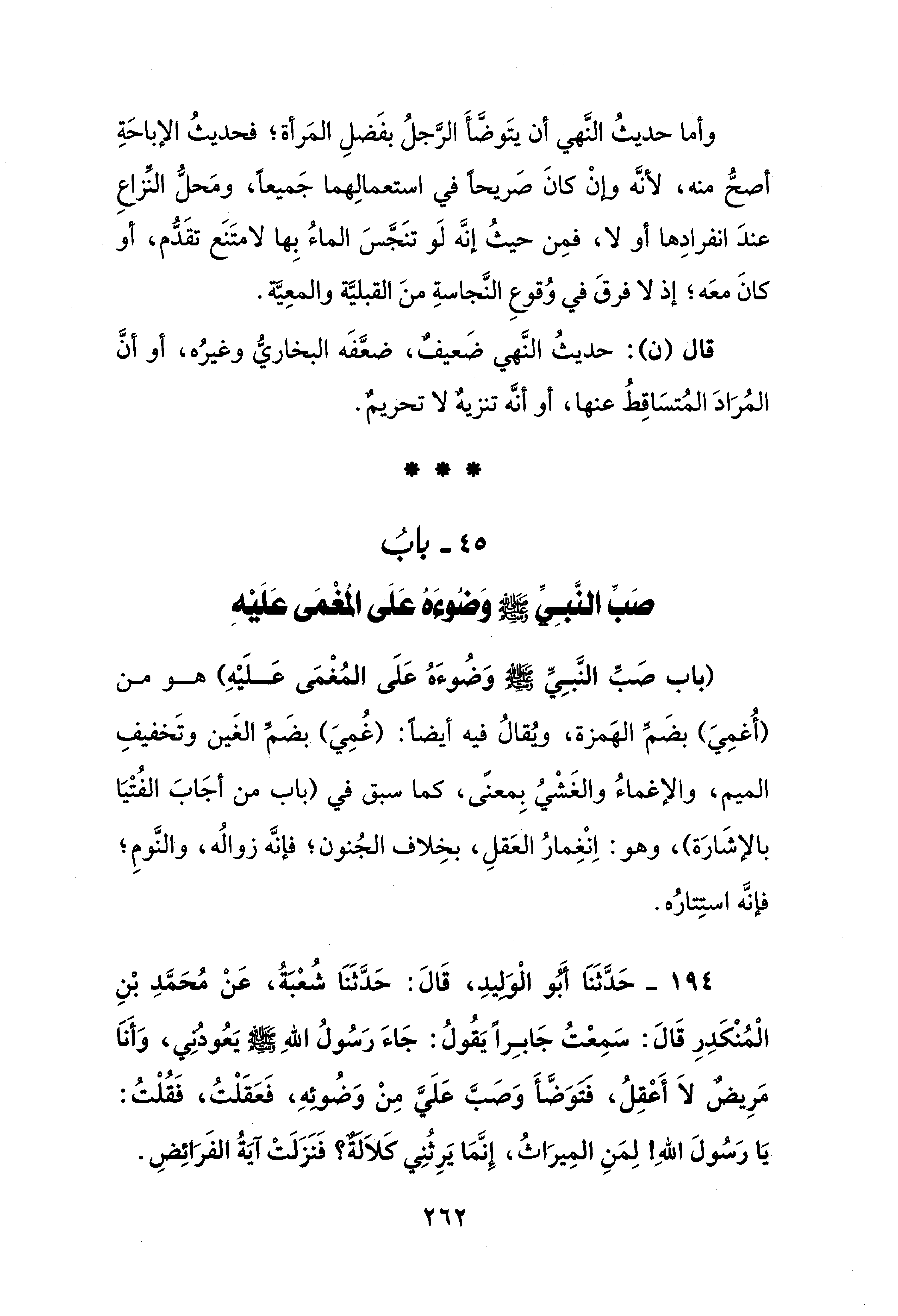 45 - بابُ صَبِّ النبِيِّ - صلى الله عليه وسلم - وَضوءهُ عَلَى المُغْمَى عَلَيْهِ
