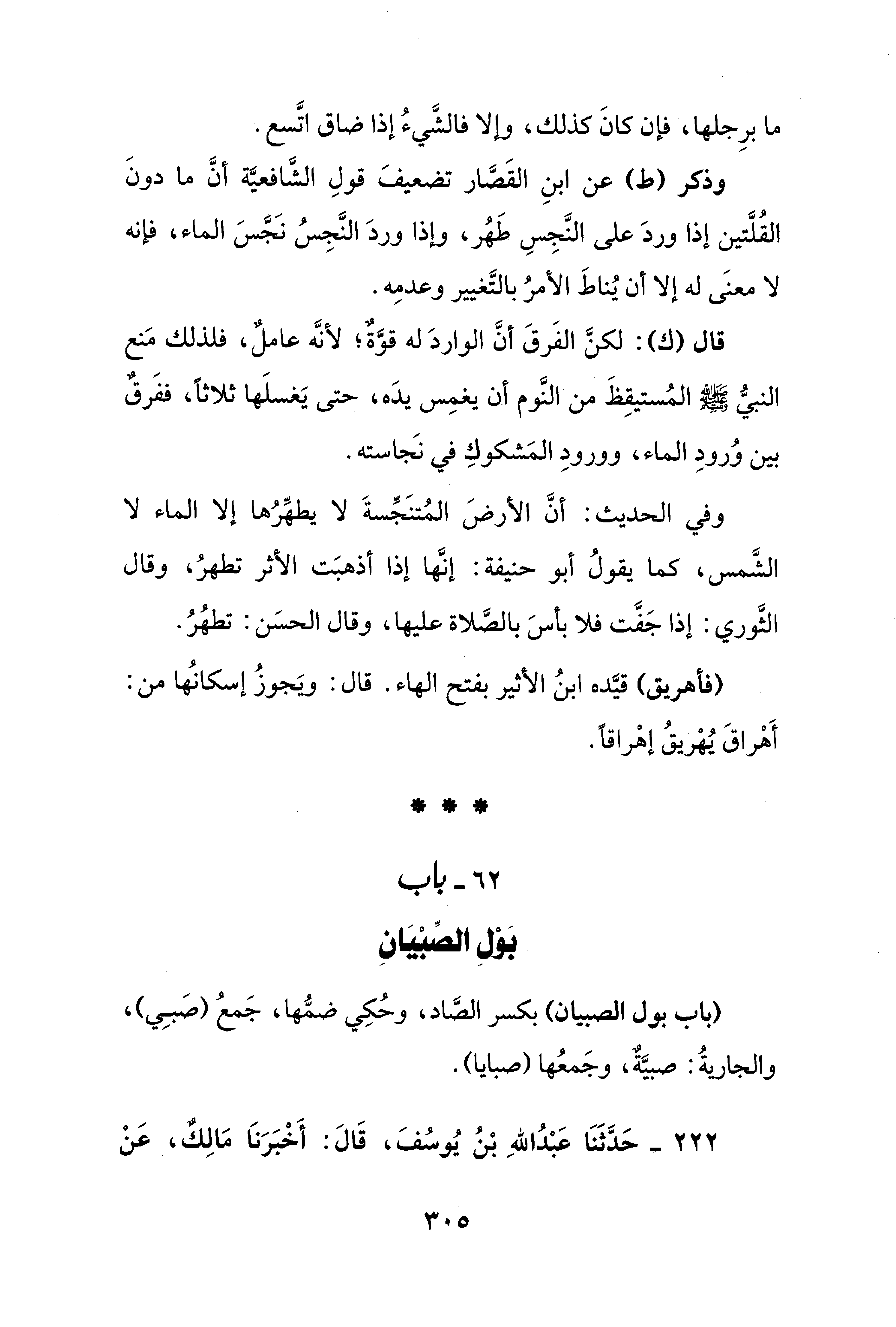 62 - باب بَوْلِ الصِّبْيَانِ