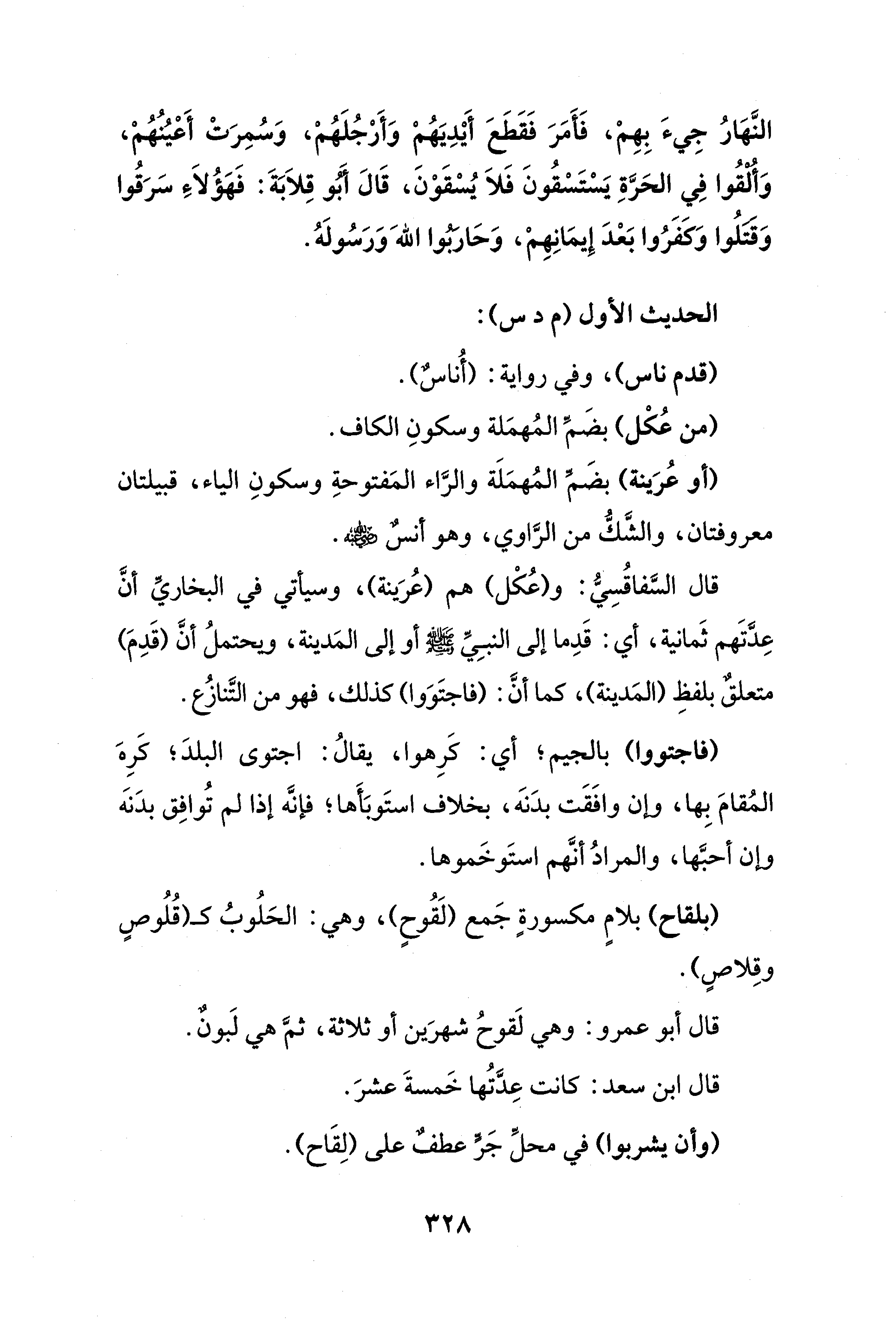 (أو عُرَينة) بضَمِّ المُهمَلَة والرَّاء المَفتوحةِ وسكونِ الياء، قبيلتان معروفتان، والشَّكُّ من الرَّاوي، وهو أنسٌ - رضي الله عنه -.