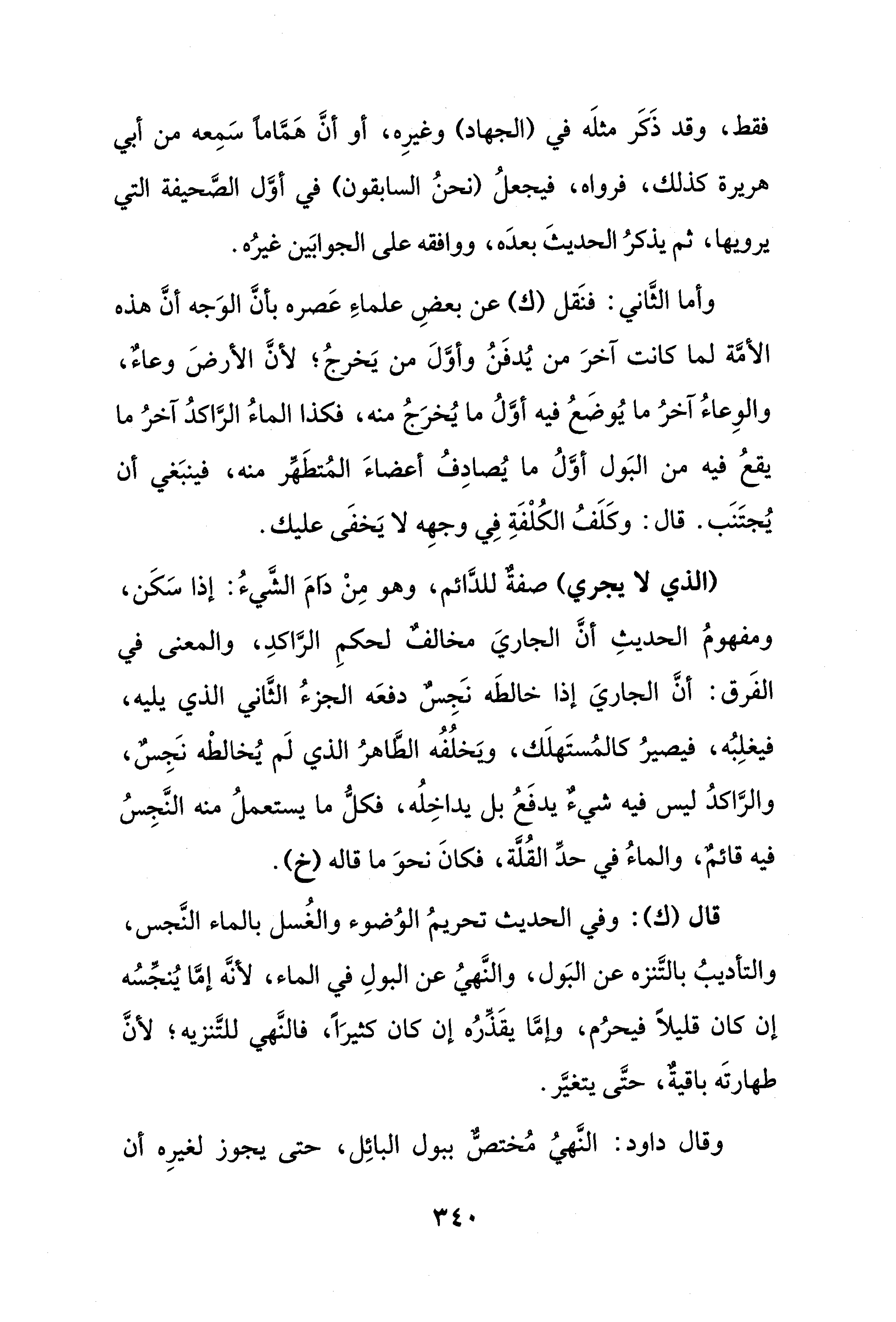 وقال داود: النَّهيُ مُختصٌّ ببول البائِل، حتى يجوز لغيرِه أن
