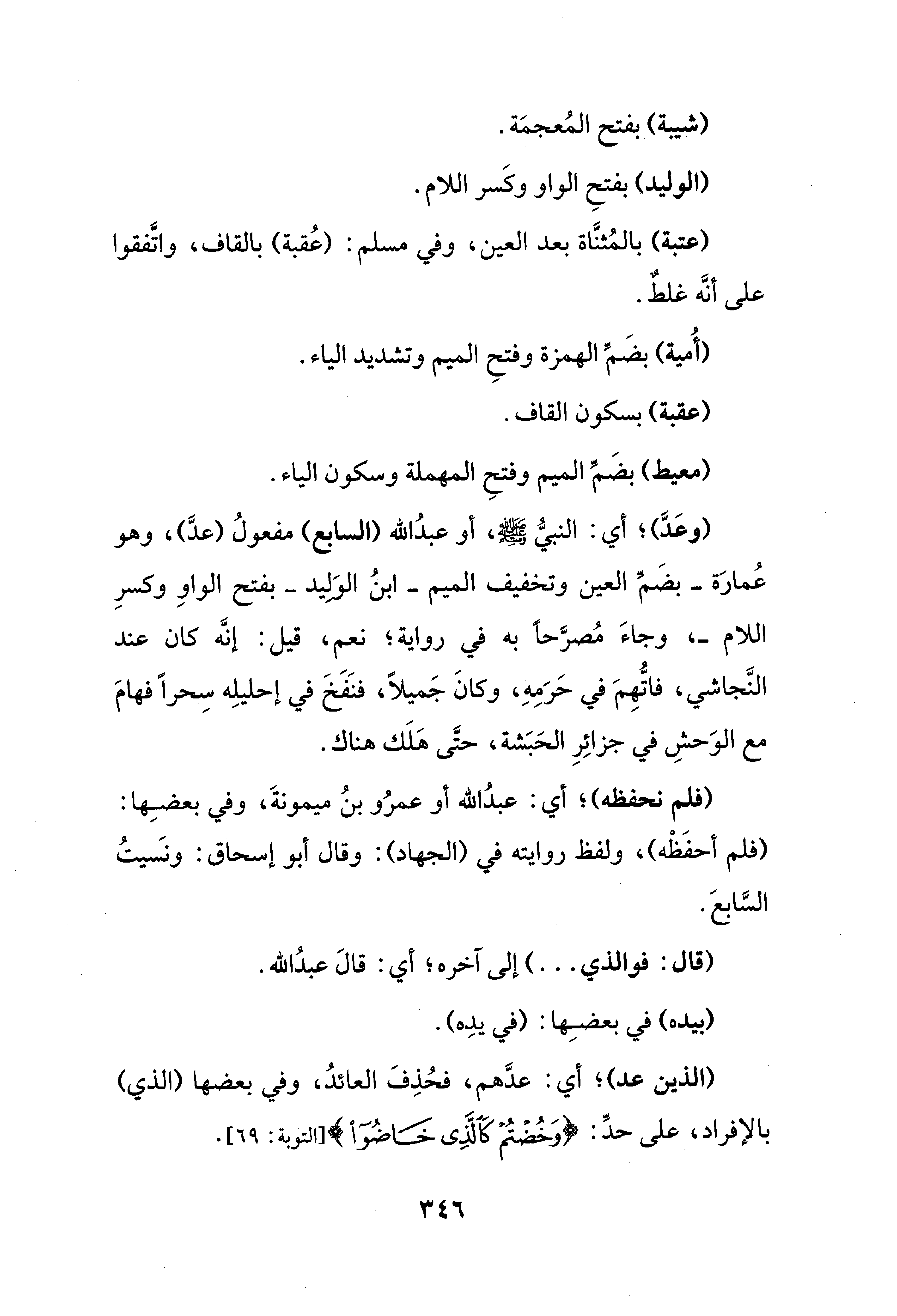 (وعَدَّ)؛ أي: النبيُّ - صلى الله عليه وسلم -، أو عبدُ الله (السابع) مفعولُ (عدَّ)، وهو عُمارَة -بضَمِّ العين وتخفيف الميم- ابنُ الوَليد -بفتح الواوِ وكسرِ اللام-، وجاءَ مُصرَّحًا به في رواية؛ نعم، قيل: إنَّه كان عند النَّجاشي، فاتُّهِمَ في حَرَمِهِ، وكانَ جَميلًا، فنَفَخَ في إحليلِه سِحرًا فهامَ مع الوَحشِ في جزائِرِ الحَبَشة، حتَّى هلَك هناك.