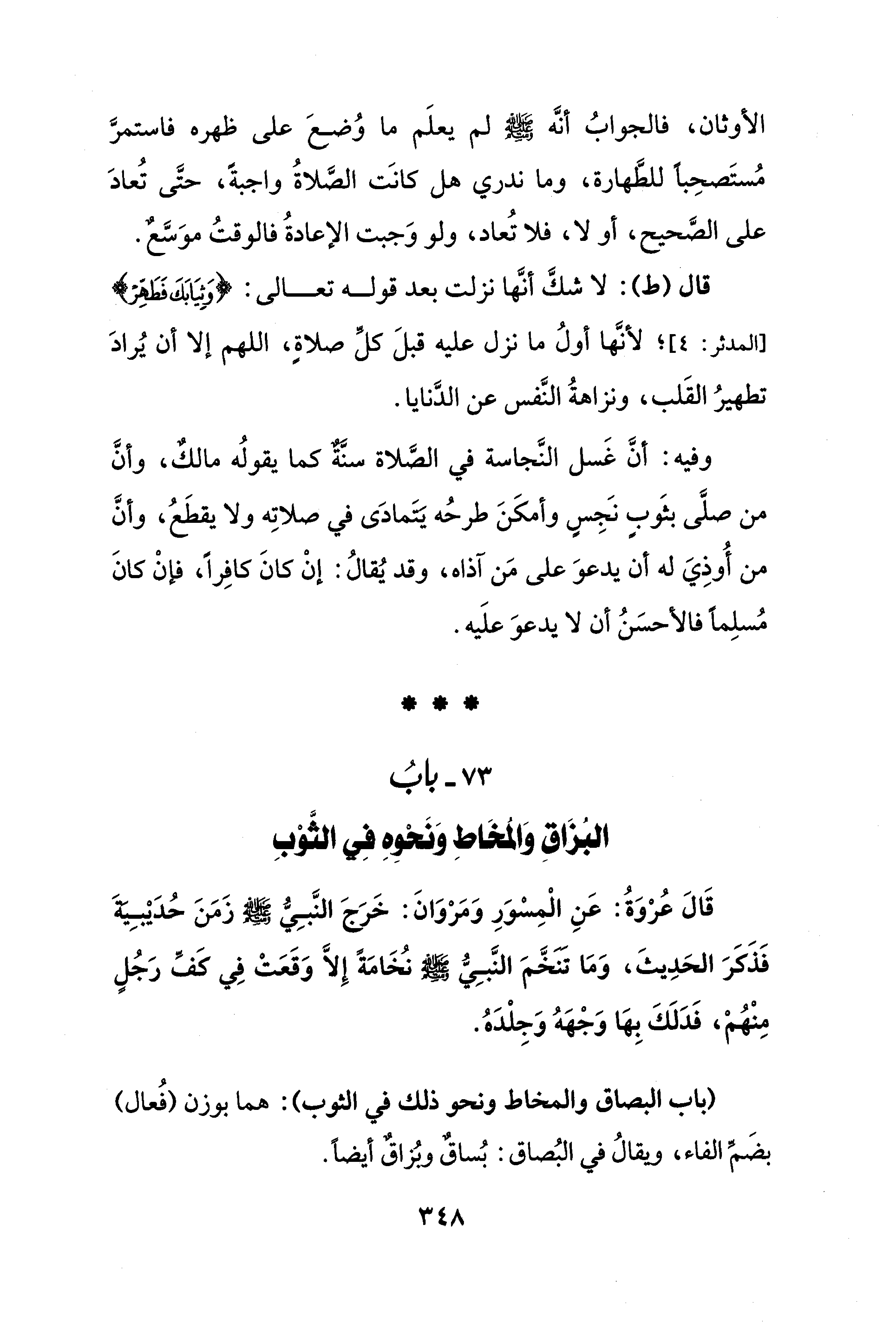 73 - بابُ البُزَاقِ وَالمُخَاطِ وَنَحوِهِ فِي الثَّوْبِ