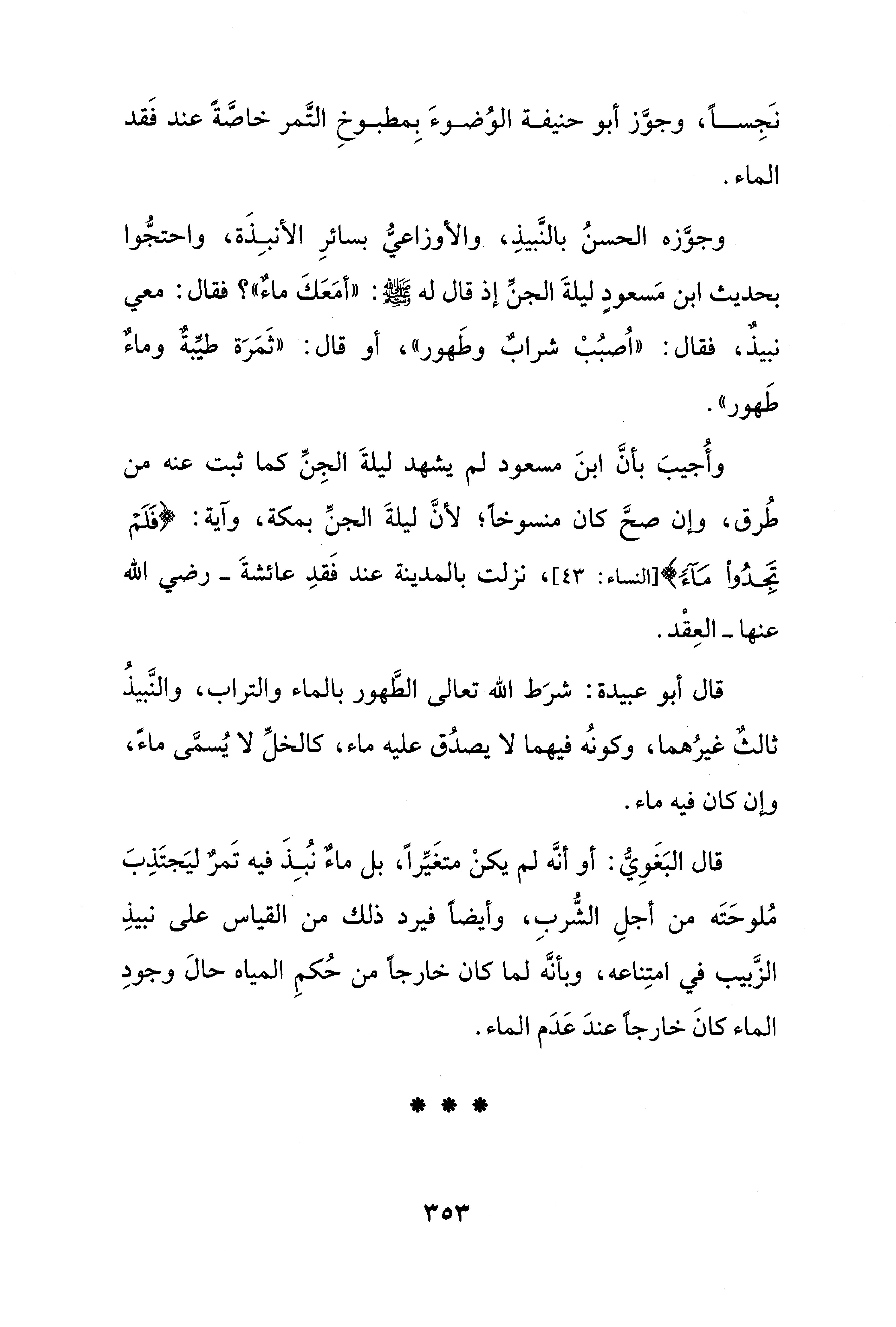 نَجِسًا، وجوَّز أبو حنيفة الوُضوءَ بِمطبوخِ التَّمر خاصَّةً عند فَقد الماء.
