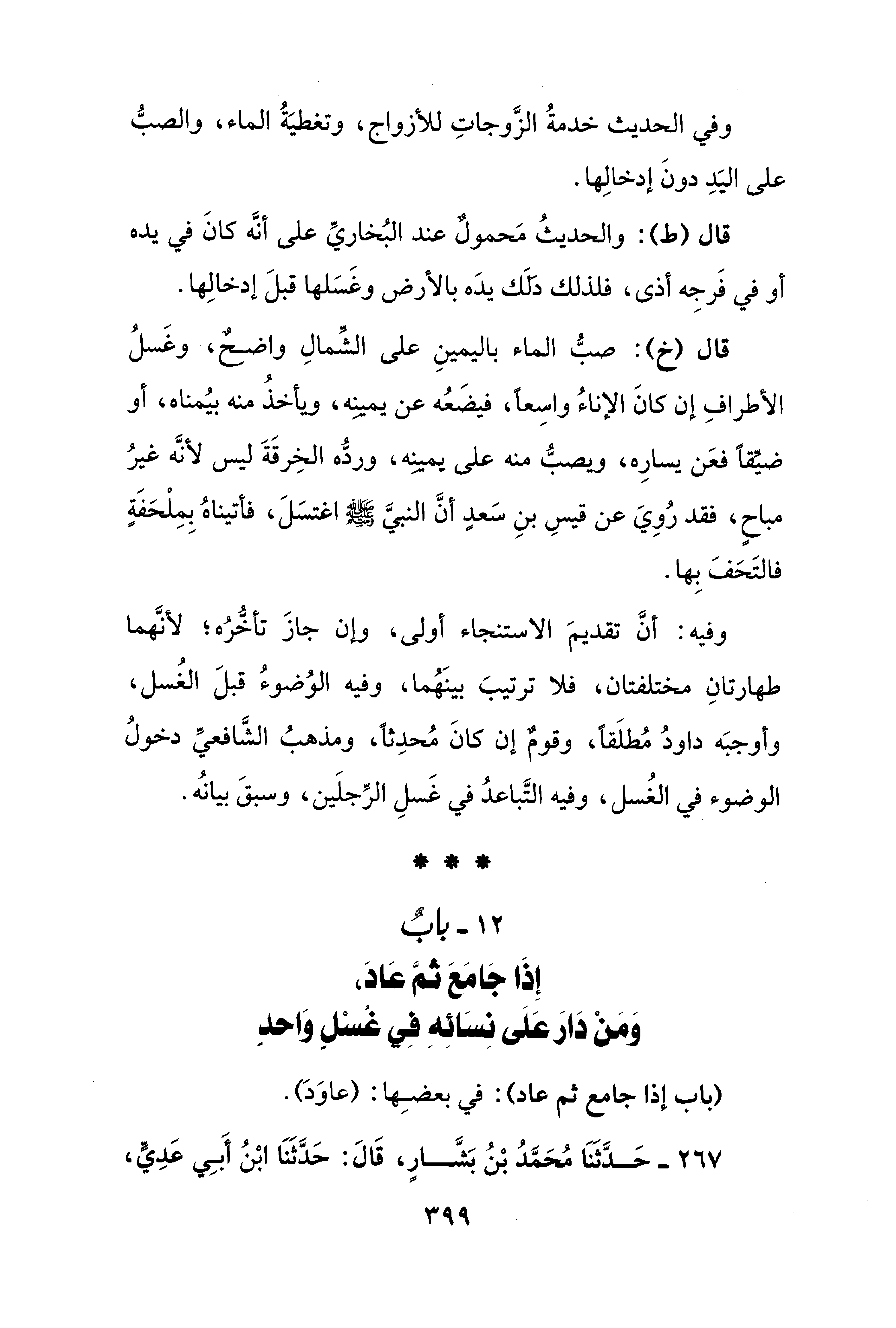 12 - بابٌ إِذَا جَامَعَ ثمَّ عَادَ، وَمَنْ دَارَ عَلَى نِسَائِهِ فِي غُسْلٍ وَاحدٍ