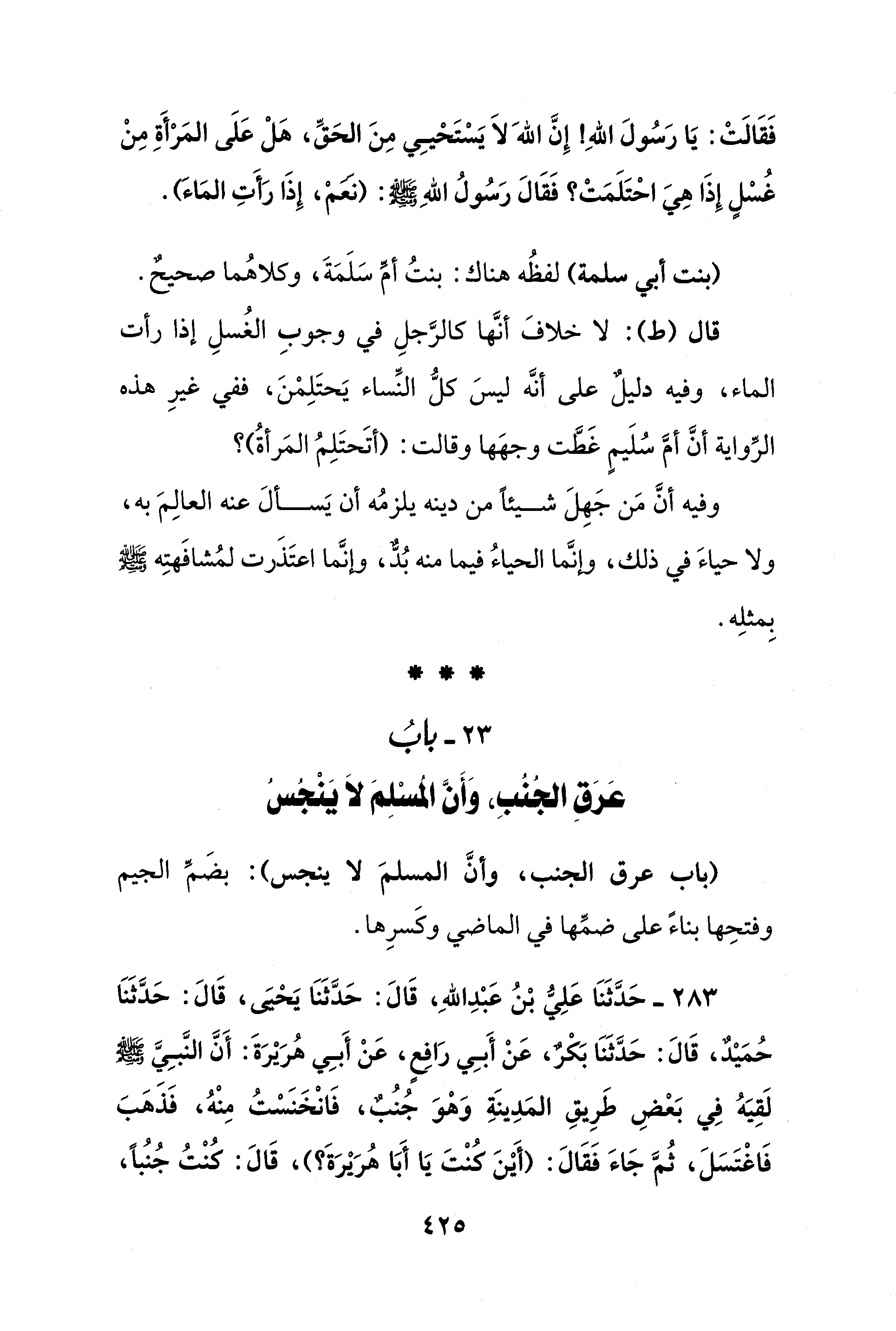 23 - بابُ عَرَقِ الجُنُبِ، وَأَنَّ المُسْلِمَ لاَ يَنْجُسُ