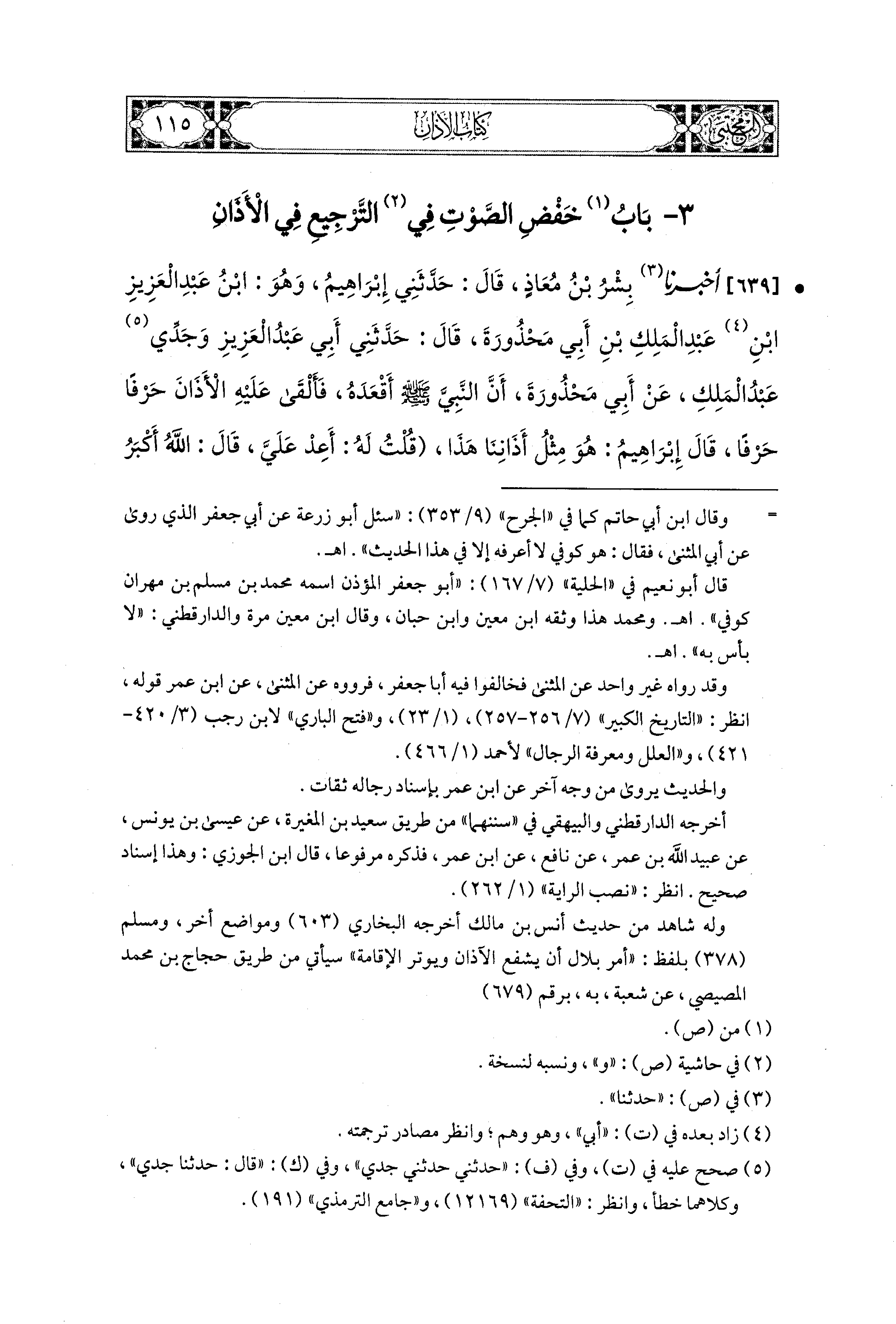 3- بَابُ خَفْضُ الصَّوْتِ فِي التَّرْجِيعِ فِي الأَذَانِ