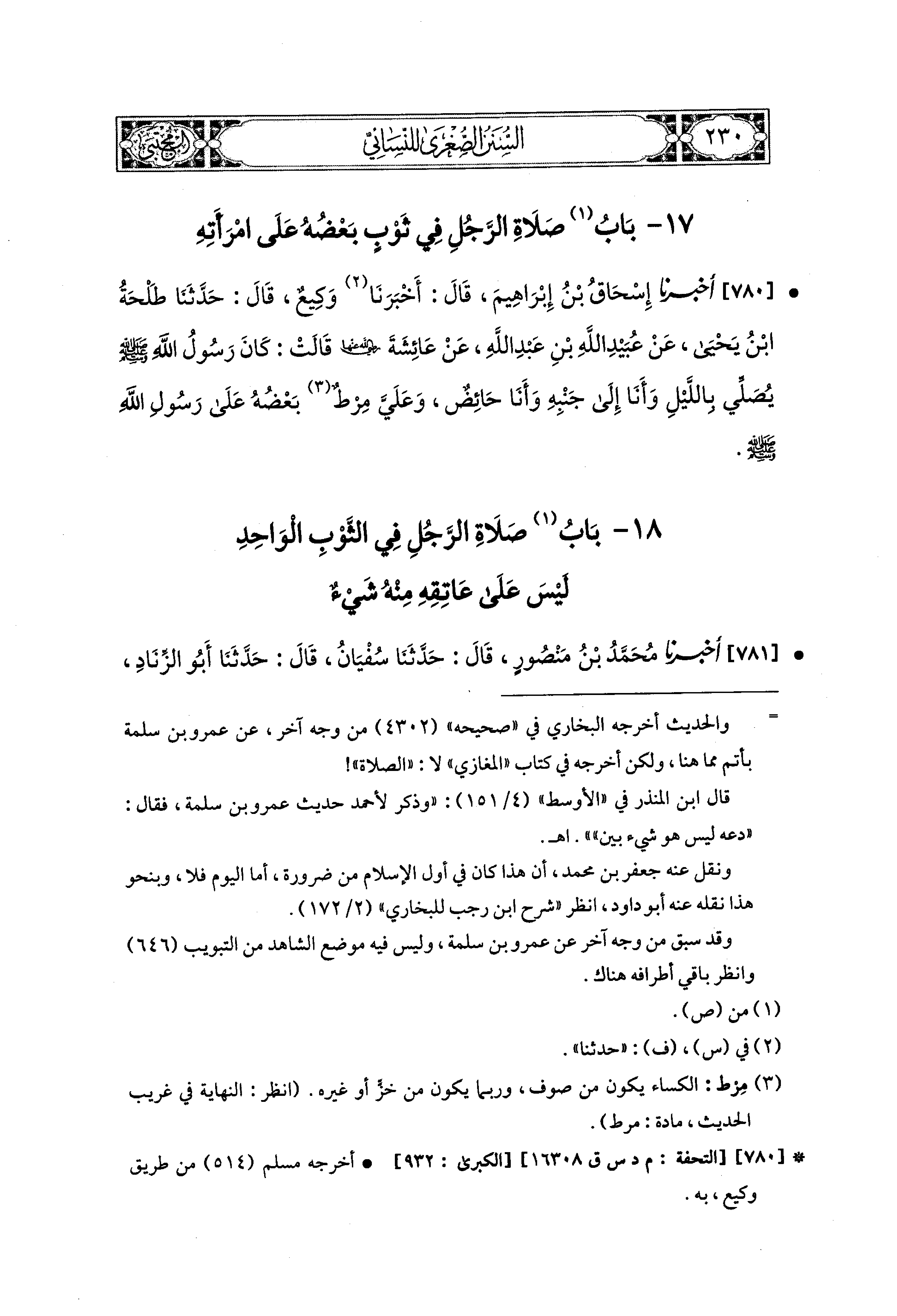 781- أَخبَرنا مُحَمد بنُ مَنْصُورٍ، قال: حَدثنا سُفيَانُ، قال: حَدثنا أَبو الزِّنَادِ، عَنِ الأَعْرَجِ، عَن أَبي هُرَيْرَةَ قَالَ: قَالَ رَسُولُ اللهِ صَلى الله عَليه وسَلم: لاَ يُصَلِّيَنَّ أَحَدُكُمْ فِي الثَّوْبِ الوَاحِدِ لَيْسَ عَلَى عَاتِقِهِ مِنْهُ شَيْءٌ.