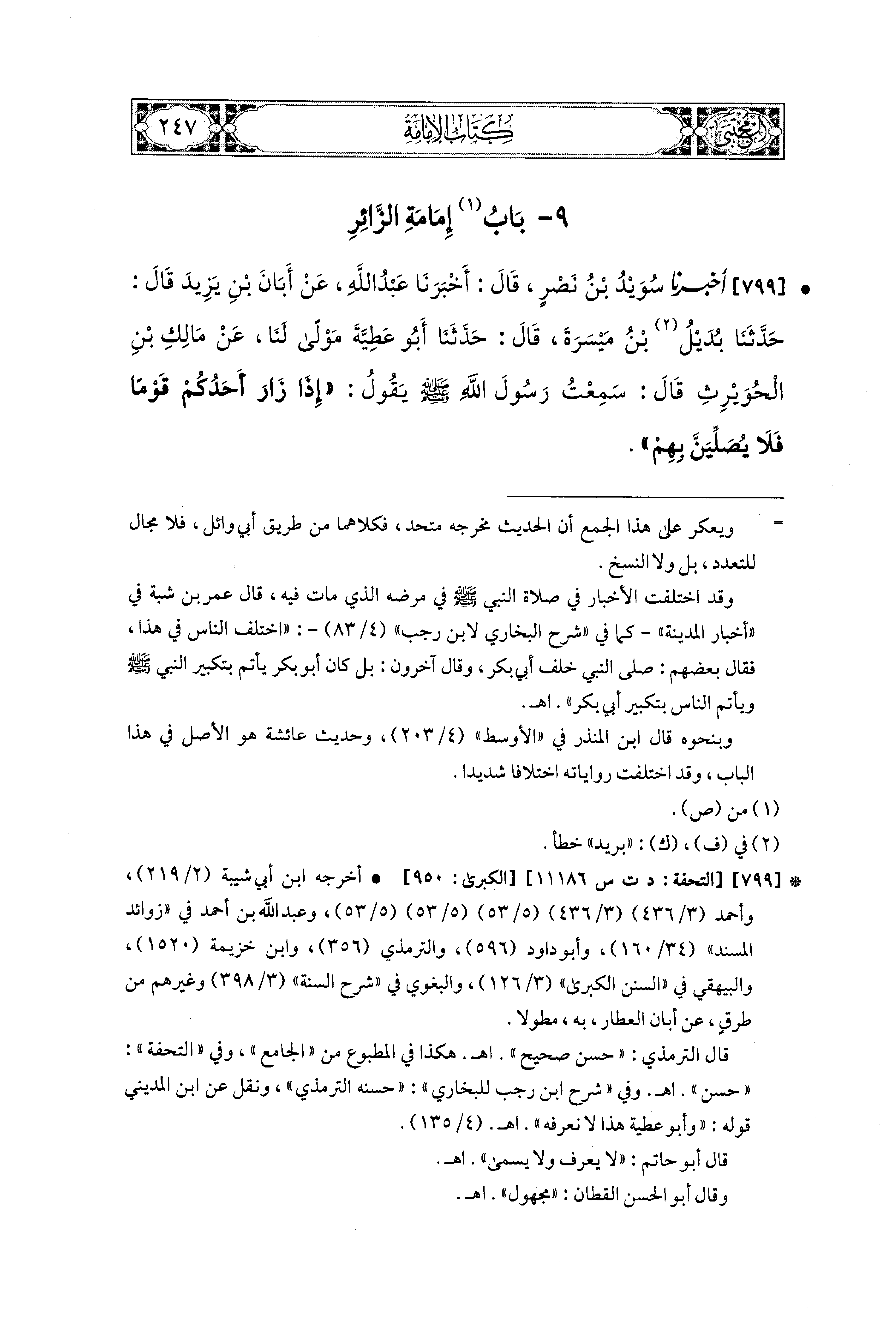 9- بَابُ إِمَامَةُ الزَّائِرِ