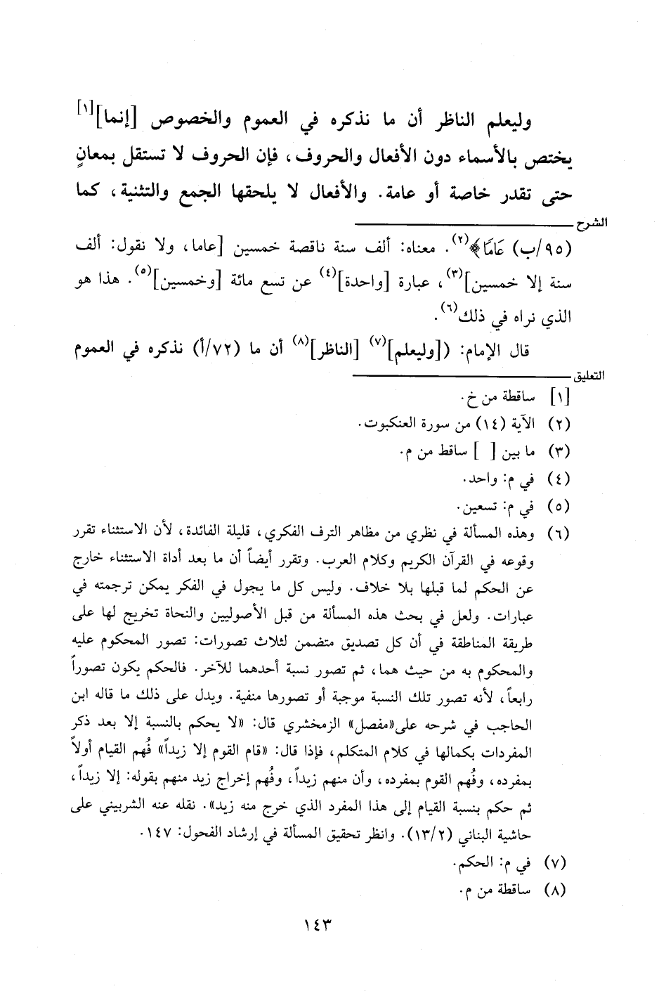 قال الإمام: ([وليعلم] [الناظر] أن ما (٧٢/أ) نذكره في العموم