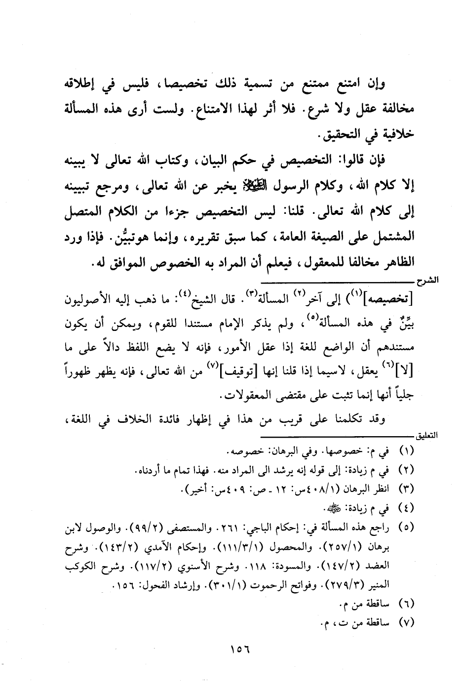 [تخصيصه] إلى آخر المسألة. قال الشيخ: ما ذهب إليه الأصوليون بين في هذه المسألة، ولم يذكر الإمام مستندا للقوم، ويمكن أن يكون مستندهم أن الواضع للغة إذا عقل الأمور، فإنه لا يضع اللفظ دالًا على ما [لا] يعقل، لاسيما إذا قلنا إنها [توقيف] من الله تعالى، فإنه يظهر ظهورًا جليًا أنها إنما تثبت على مقتضى المعقولات.