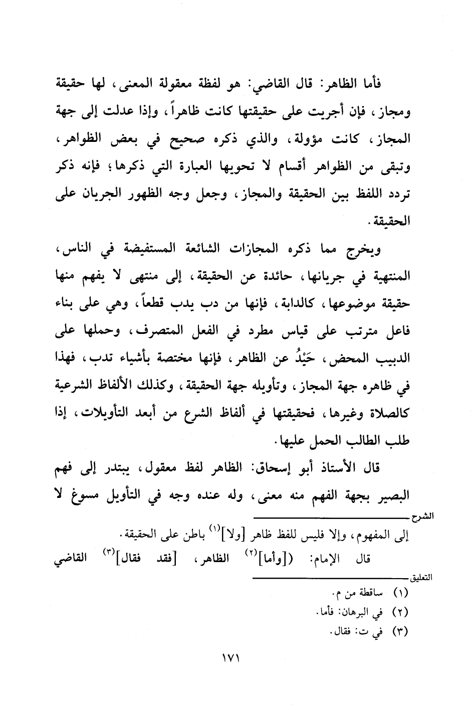 قال الإمام: ([وأما] الظاهر، [فقد فقال] القاضي