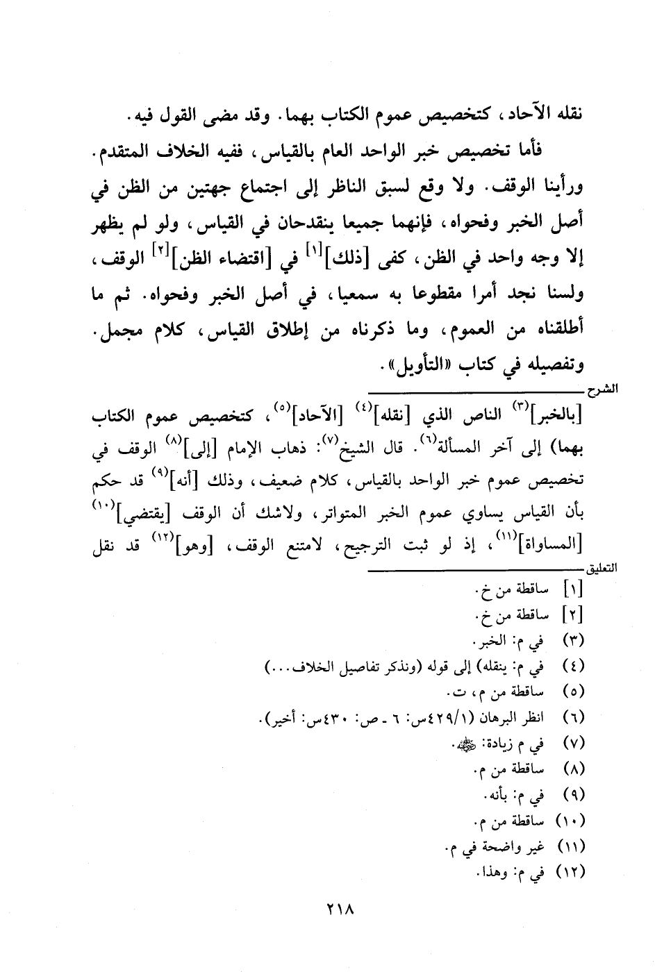 [بالخبر] الناص الذي [نقله] [الآحاد]، كتخصيص عموم الكتاب بهما) إلى آخر المسألة. قال الشيخ: ذهاب الإمام [إلى] الوقف في تخصيص عموم خبر الواحد بالقياس، كلام ضعيف، وذلك [أنه] قد حكم بأن القياس يساوي عموم الخبر المتواتر، ولا شك أن الوقف [يقتضي] [المساواة]، إذ لو ثبت الترجيح، لامتنع الوقف، [وهو] قد نقل