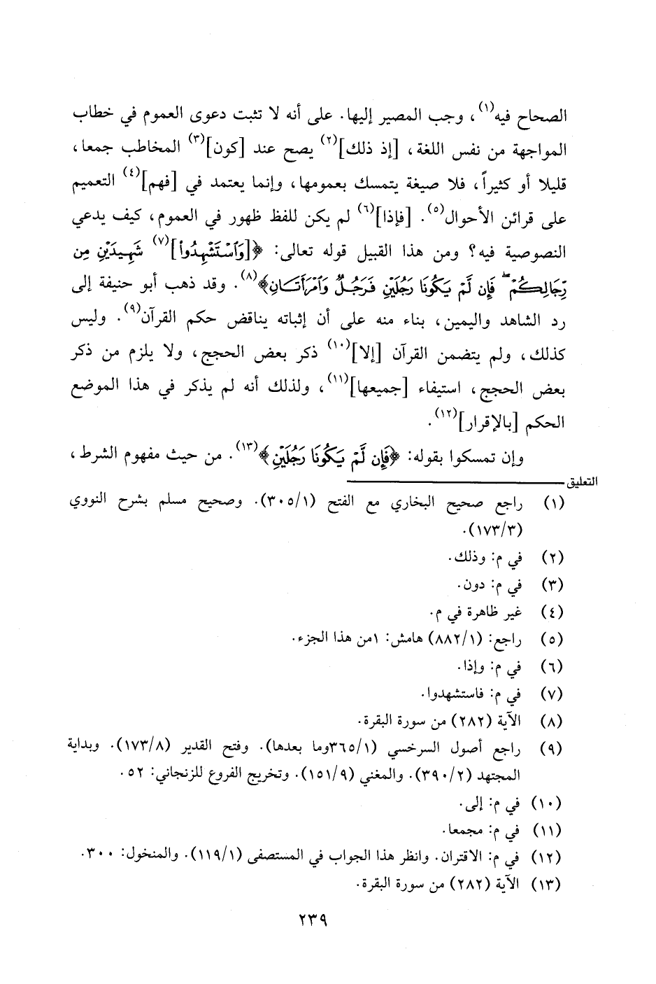 الصحاح فيه، وجب المصير إليها. على أنه لا يثبت دعوى العموم في خطاب المواجهة من نفس اللغة، [إذا ذلك] يصح عند [كون] المخاطب جمعا، قليلا أو كثيرًا، فلا صيغة يتمسك بعمومها، وإنما يعتمد في [فهم] التعميم على قرائن الأحوال. [فإذا] لم يكن للفظ ظهور في العموم، كيف يدعي النصوصية فيه؟ ومن هذا القبيل قوله تعالى: {[واستشهدوا] شهدين من رجالكم فإن لم يكونا رجلين فرجل وامرأتان}. وقد ذهب أبو حنيفة إلى رد الشاهد واليمين، بناء منه على أنه إثباته يناقض حكم القرآن. وليس كذلك، ولم يتضمن القرآن [إلا] ذكر بعض الحجج، ولا يلزم من ذكر بعض الحجج، استفاء [جميعها]، ولذلك أنه لم يذكر في هذا الموضع الحكم [بالإقرار].