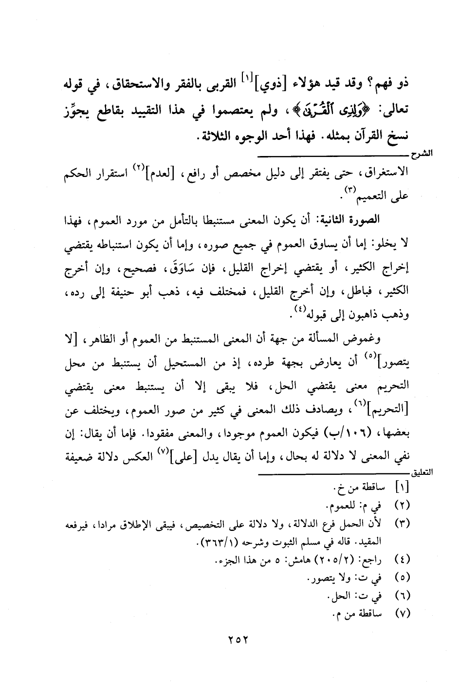 الصور الثانية: أن يكون المعنى مستنبطا بالتأمل من مورد العموم، فهذا لا يخلو: إما أن يساوق العموم في جميع صوره، وإما أن يكون استنباطه يقتضي إخراج الكثير، أو يقتضي إخراج القليل، فإن ساوق، فصحيح، وإن أخرج الكثير، فباطل، وإن أخرج القليل، فمختلف فيه، ذهب أبو حنيفة إلى رده، وذهب ذاهبون إلى قبوله.