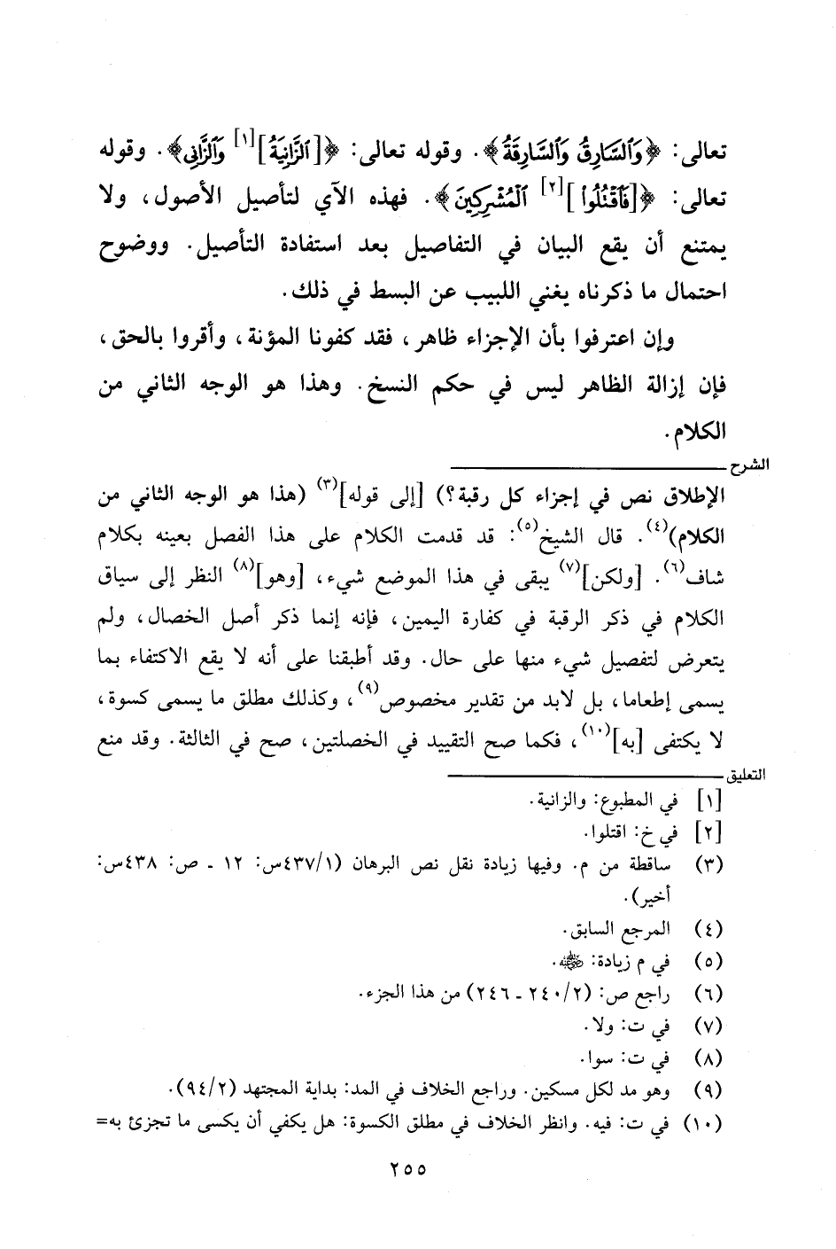 الإطلاق نص في إجراء كل رقبة؟ ) [إلى قوله] (هذا هو الوجه الثاني من الكلام). قال الشيخ: قد قدمت الكلام على هذا الفصل بعينه بكلام شاف. [ولكن] يبقى في هذا الموضع شيء، [وهو] النظر إلى سياق الكلام في ذكر الرقبة في كفارة اليمين، فإنه إنما ذكر أصل الخصال، ولم يتعرض لتفصيل شيء منها على حال. وقد أطبقنا على أنه لا يقع الاكتفاء بما يسمى إطعاما، بل لابد من تقدير مخصوص، وكذلك مطلق ما يسمى كسوة، لا يكتفى [به]، فكما صح التقييد في الخصلتين، صح في الثالثة. وقد منع