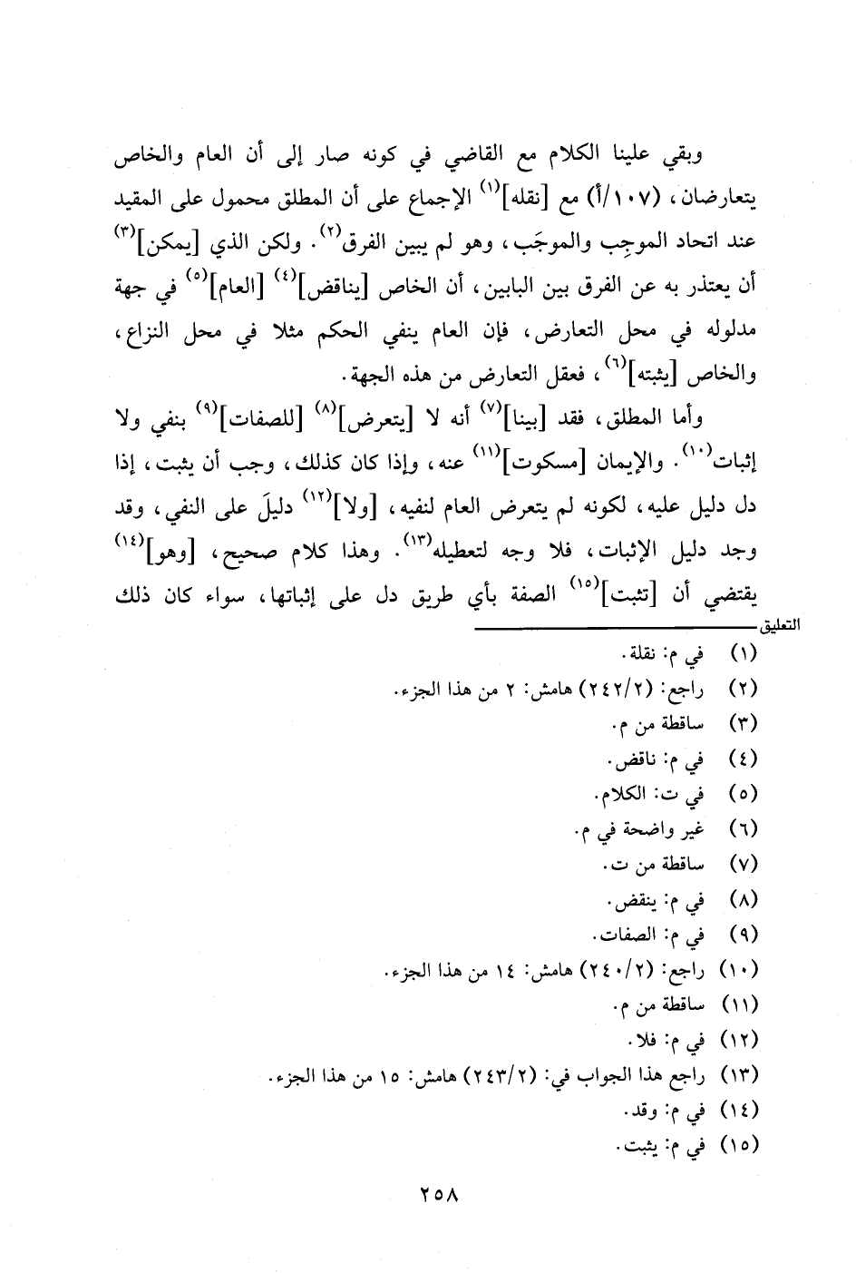 وأما المطلق، فقد [بينا] أنه لا [يتعرض] [للصفات] بنفي ولا إثبات. والإيمان [مسكوت] عنه، وإذا كان كذلك، وجب أن يثبت، إذا دل دليل عليه، لكونه لم يتعرض العام لنفيه، [ولا] دليل على النفي، وقد وجد دليل الإثبات، فلا وجه لتعطيله. وهذا كلام صحيح، [وهو] يقتضي أن [تثبت] الصفة بأي طريق دل على إثباتها، سواء كان ذلك