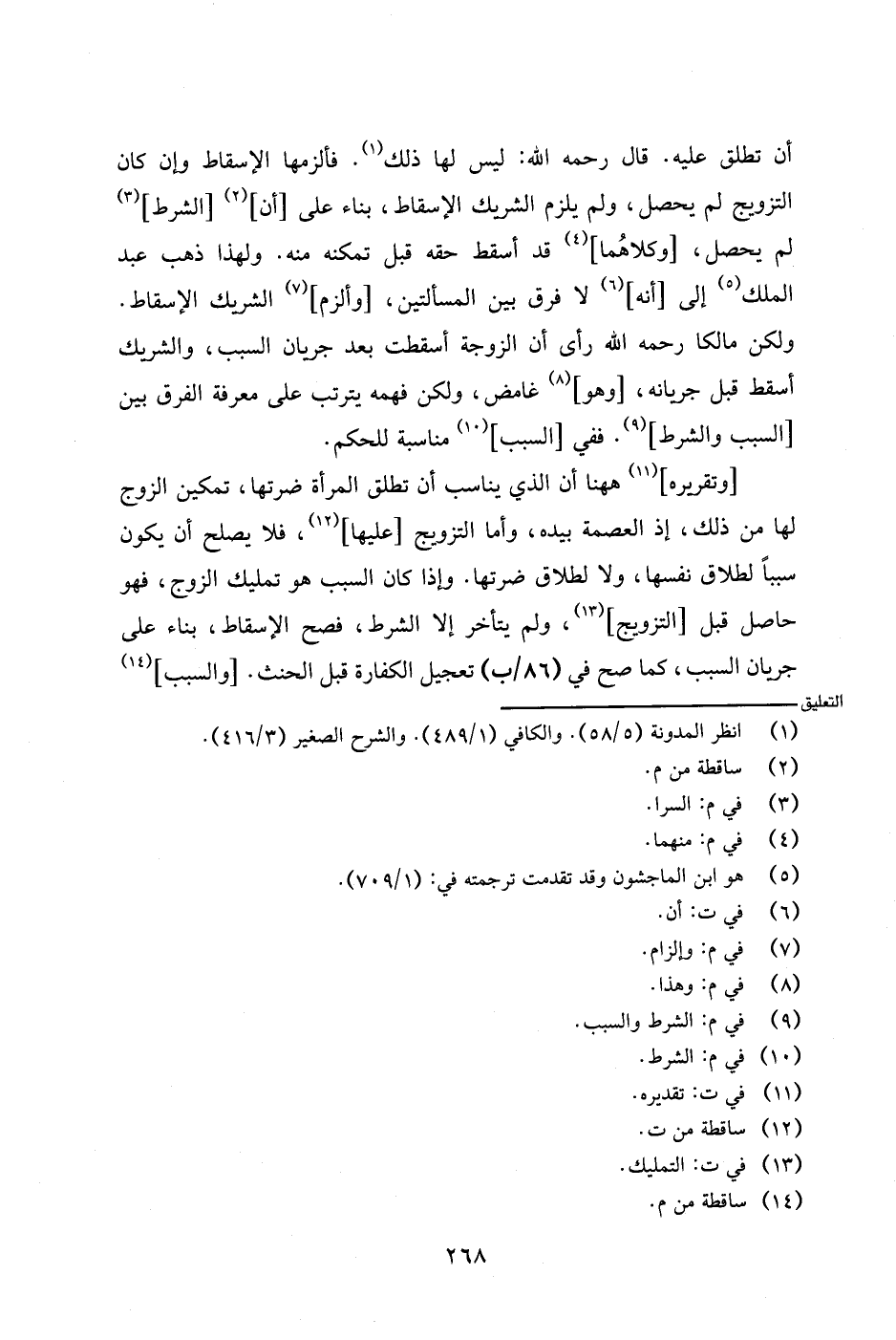 ولكن مالكا رحمه الله رأى أن الزوجة أسقطت بعد جريان السبب، والشريك أسقط قبل جريانه، [وهو] غامض، ولكن فهمه يترتب على معرفة الفرق بين [السبب والشرط]. ففي [السبب] مناسبة للحكم.