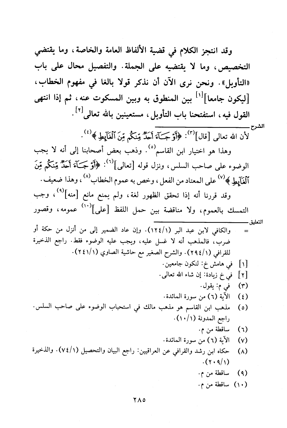لأن الله تعالى [قال]: {أو جاء أحد منكم من الغائط}.