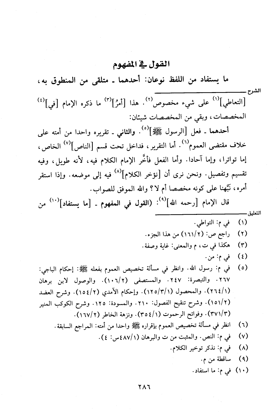 قال الأمام [رحمه الله]: (القول في المفهوم-[ما يستفاد] من