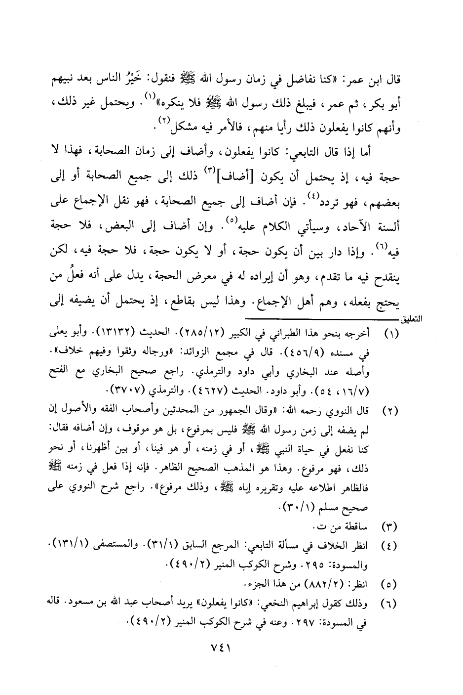 قال ابن عمر: (كنا نفاضل في زمان رسول الله - صلى الله عليه وسلم - فنقول: خير الناس بعد نبيهم أبو بكر، ثم عمر، فيبلغ ذلك رسول الله - صلى الله عليه وسلم - فلا ينكره). ويحتمل غير ذلك، وأنهم كانوا يفعلون ذلك رأيا منهم، فالأمر فيه مشكل.