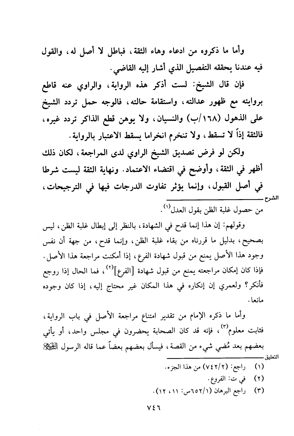 وأما ما ذكره الإمام من تقدير امتناع مراجعة الأصل في باب الرواية، فثابت معلوم، فإنه قد كان الصحابة يحضرون في مجلس واحد، أو يأتي بعضهم بعد مُضي شيء من القصة، فيسأل بعضهم بعضًا عما قاله الرسول عليه السلام