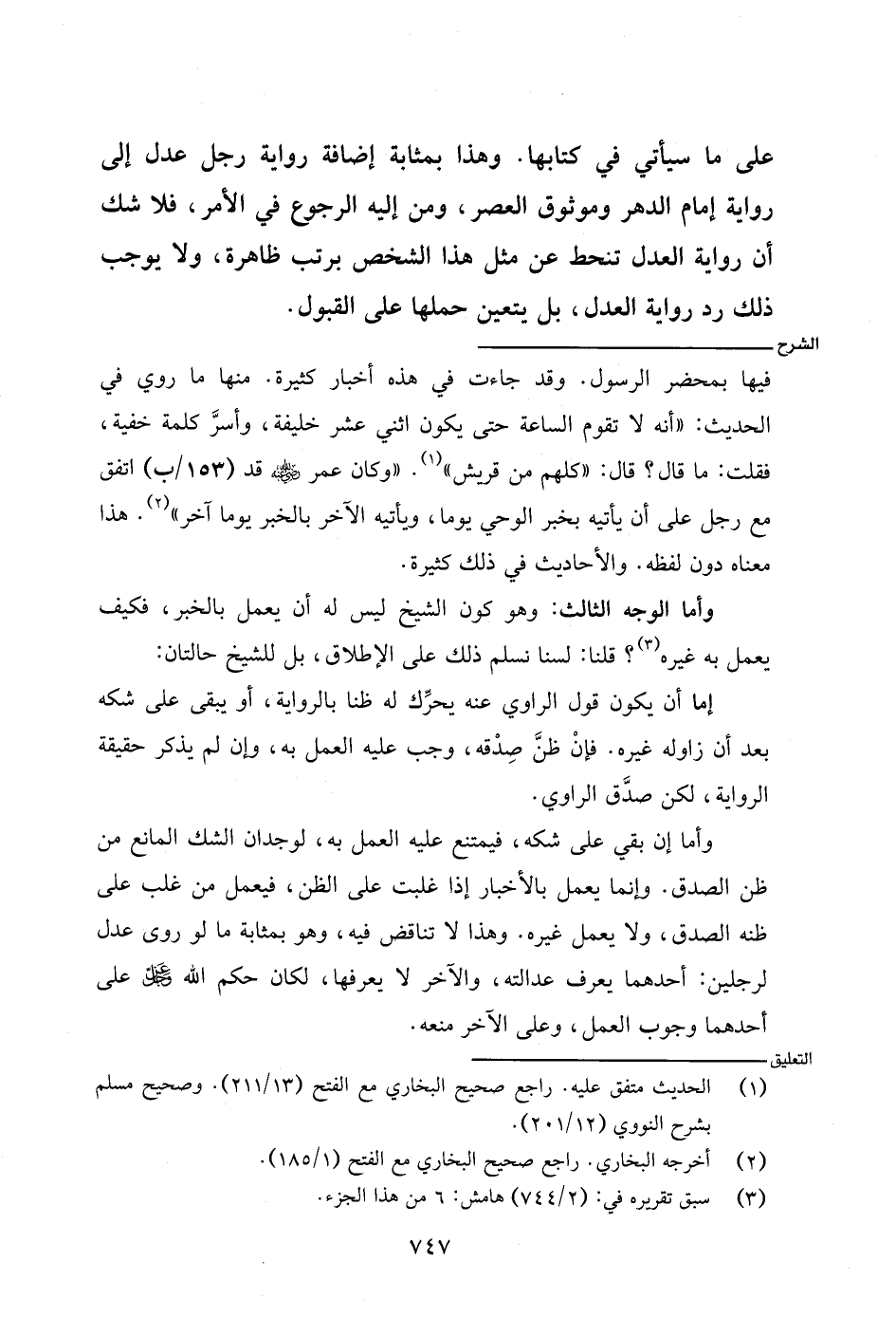 فيها بمحضر الرسول. وقد جاءت في هذه أخبار كثيرة. منها ما روي في الحديث: (أنه لا تقوم الساعة حتى يكون اثني عشر خليفة، وأسر كلمة خفية، فقلت: ما قال؟ قال: (كلهم من قريش). (وكان عمر - رضي الله عنه - قد (١٥٣/ب) اتفق مع رجل على أن يأتيه بخبر الوحي يوما، ويأتيه الآخر بالخبر يوما آخر). هذا معناه دون لفظه. والأحاديث في ذلك كثيرة.
