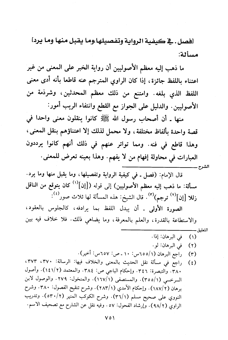 قال الإمام: (فصل - في كيفية الرواية وتفصيلها، وما يقبل منها وما يرد. مسألة: ما ذهب إليه معظم الأصوليين) إلى قوله ([إن] كان يتوقع من الناقل زللا [إن] ترجم). قال الشيخ: هذه المسألة لها ثلاث صور: