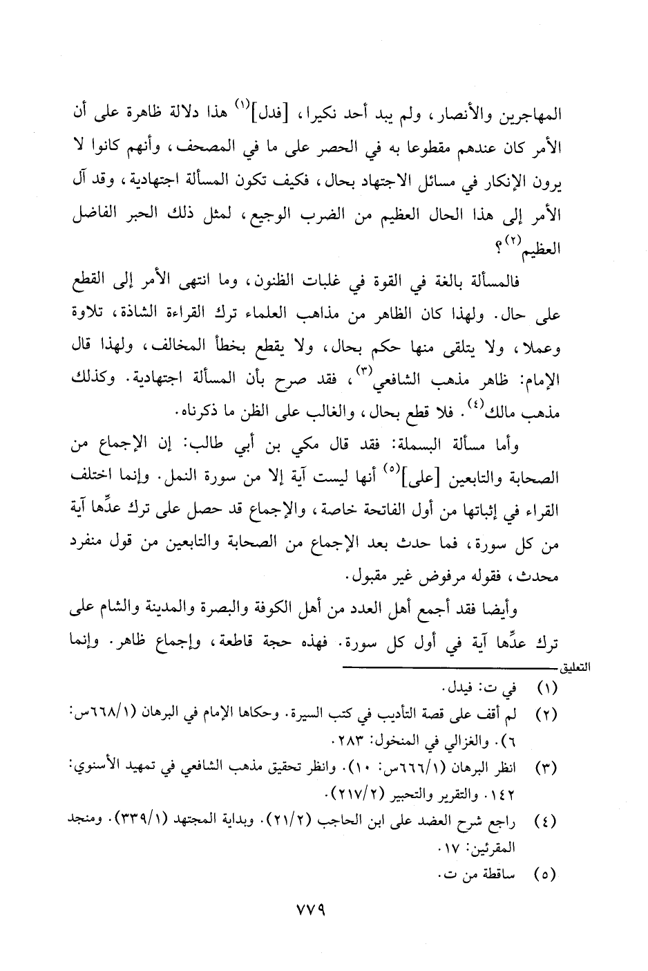 وأما مسألة البسملة: فقد قال مكي بن أبي طالب: إن الإجماع من الصحابة والتابعين [على] أنها ليست آية إلا من سورة النمل. وإنما اختلف القراء في إثباتها من أول الفاتحة خاصة، والإجماع قد حصل على ترك عدها آية من كل سورة، فما حدث بعد الإجماع من الصحابة والتابعين من قول منفرد محدث، فقوله مرفوض غير مقبول.