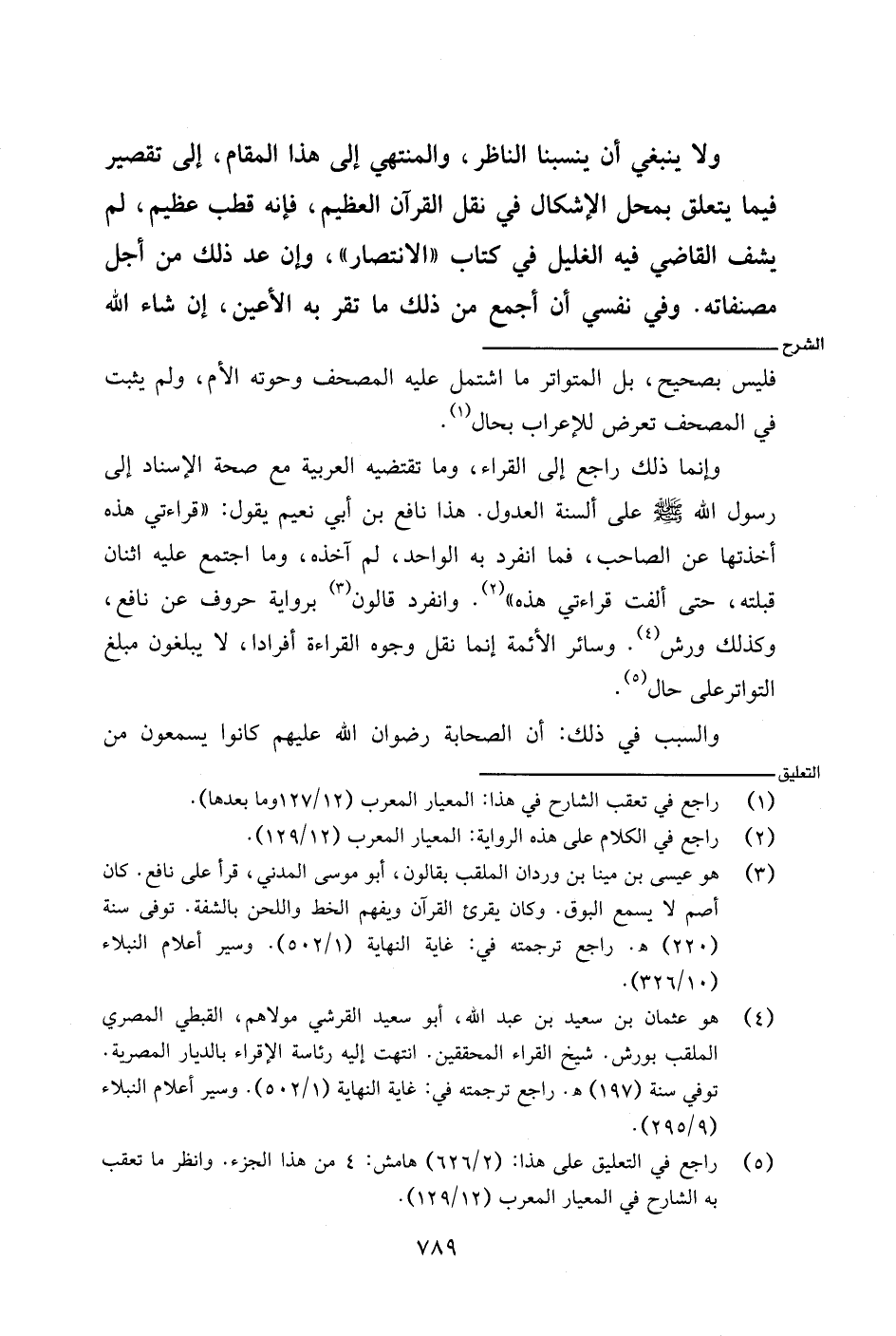 وإنما ذلك راجع إلى القراء، وما تقتضيه العربية مع صحة الإسناد إلى رسول الله - صلى الله عليه وسلم - على ألسنة العدول. هذا نافع بن أبي نعيم يقول: (قراءتي هذه أخذتها عن الصاحب، فما انفرد به الواحد، لم آخذه، وما اجتمع عليه اثنان قبلته، حتى ألفت قراءتي هذه). وانفرد قالون برواية حروف عن نافع، وكذلك ورش. وسائر الأئمة إنما نقل وجوه القراءة أفرادا، لا يبلغون مبلغ التواتر على حال.