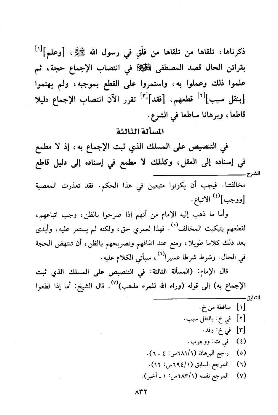 قال الإمام: (المسألة الثالثة: في التنصيص على المسلك الذي ثبت الإجماع به) إلى قوله (وراء الله للمرء مذهب). قال الشيخ: أما إذا قطعوا