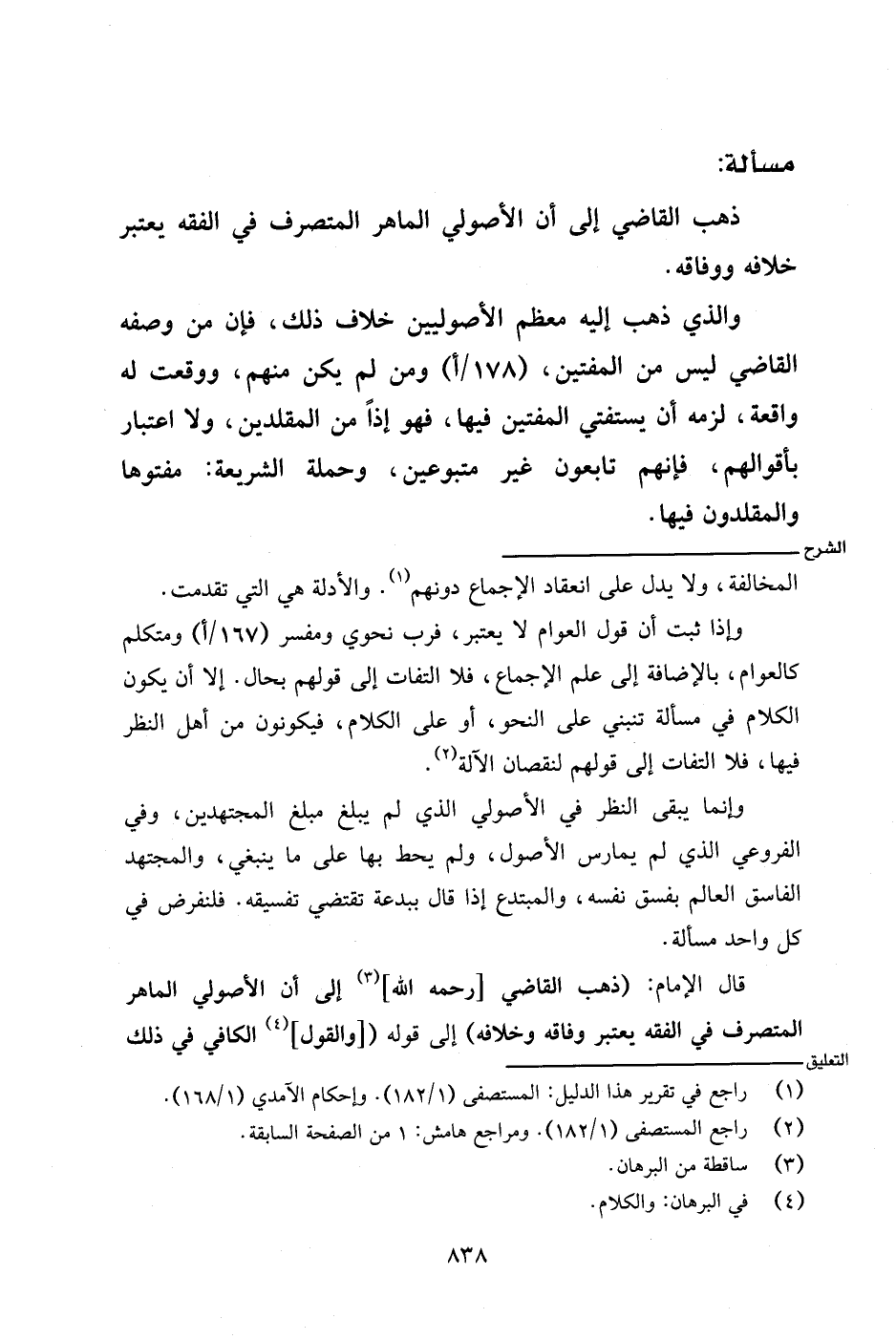 قال الإمام: (ذهب القاضي [رحمه الله] إلى أن الأصولي الماهر المتصرف في الفقه يعتبر وفاقه وخلافه) إلى قوله ([والقول] الكافي في ذلك