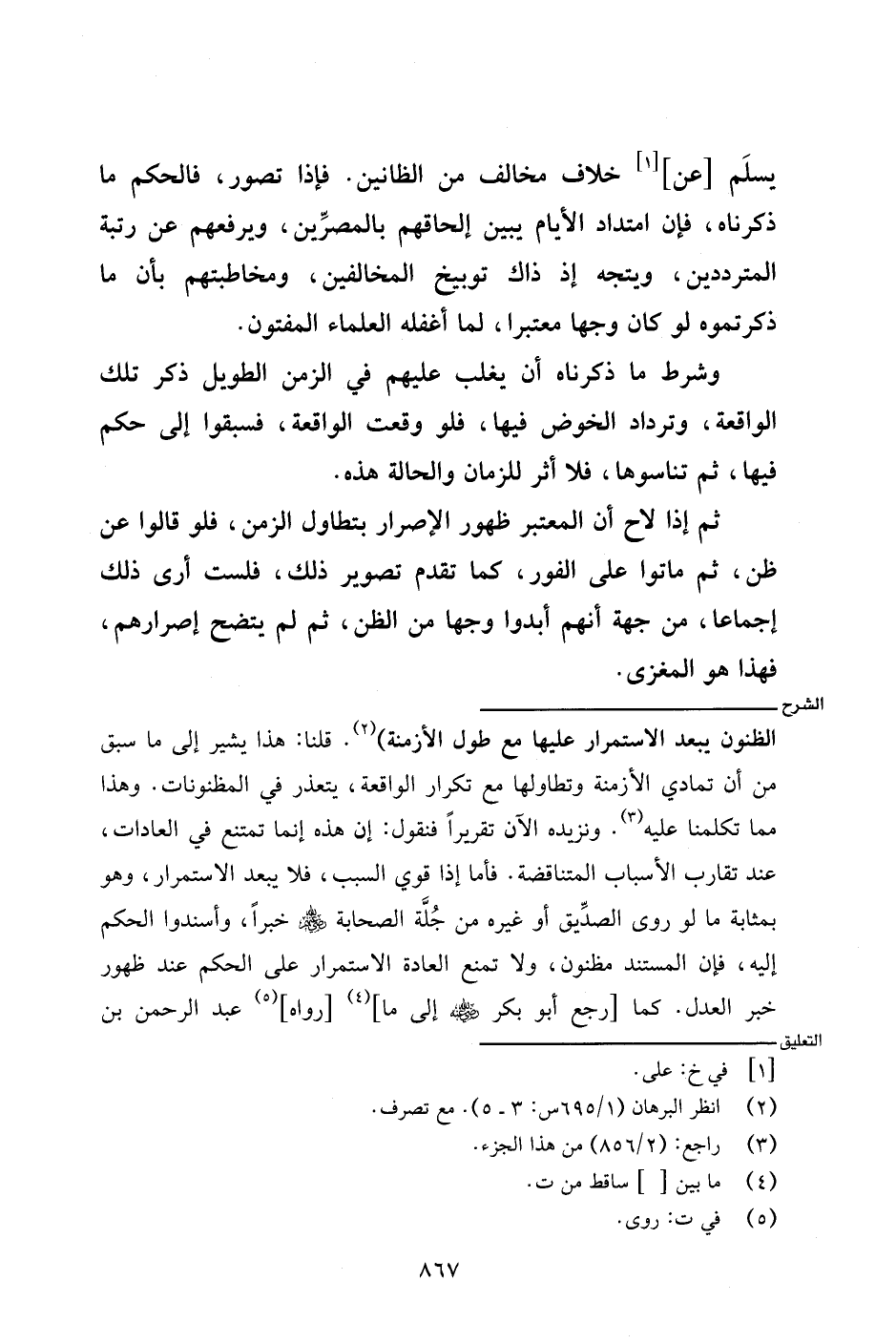 الظنون يبعد الاستمرار عليها مع طول الأزمنة). قلنا: هذا يشير إلى ما سبق من أن تمادي الأزمنة وتطاولها مع تكرار الواقعة، يتعذر في المظنونات. وهذا مما تكلمنا عليه. ونزيده الآن تقريرًا فنقول: إن هذه إنما تمتنع في العادات، عند تقارب الأسباب المتناقضة. فأما إذا قوي السبب، فلا يبعد الاستمرار، وهو بمثابة ما لو روى الصديق أو غيره من جلة الصحابة - رضي الله عنه - خبرًا، وأسندوا الحكم إليه، فإن المستند مظنون، ولا تمنع العادة الاستمرار على الحكم عند ظهور خبر العدل. كما [رجع أبو بكر - رضي الله عنه - إلى ما] [رواه] عبد الرحمن بن