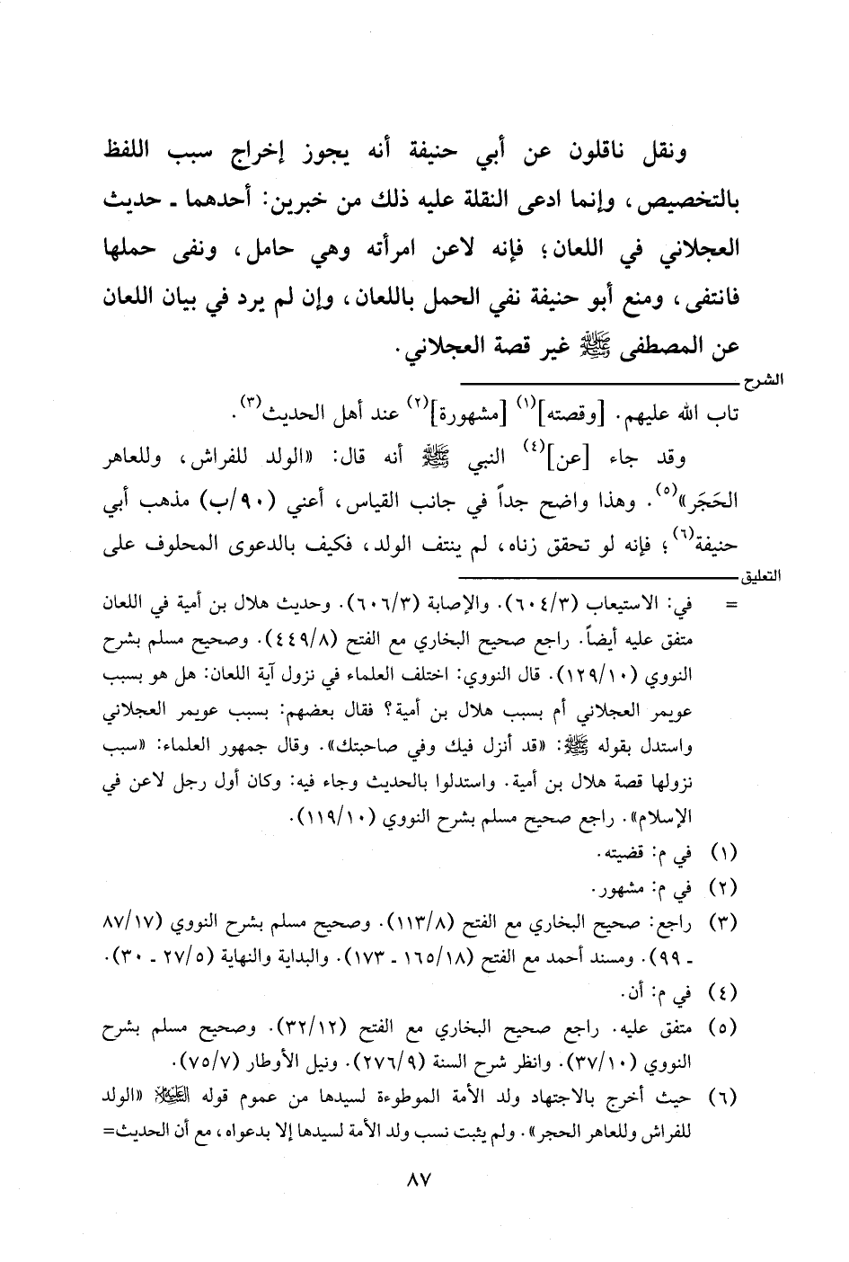 وقد جاء [عن] النبي صلى الله عليه وسلم أنه قال: (الولد للفراش، وللعاهر الحجر). وهذا واضح جدًا في جانب القياس، أعني (٩٠/ب) مذهب أبي حنيفة؛ فإنه لو تحقق زناه، لم ينتف الولد، فكيف بالدعوى المحلوف على