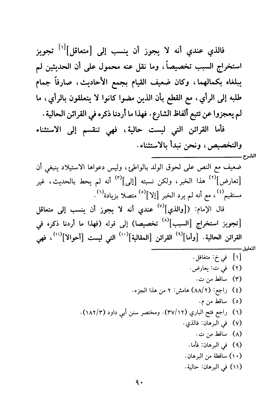 قال الإمام: ([والذي] عندي أنه لا يجوز أن ينسب إلى متعاقل [تجويز استخراج [السبب] تخصيصا) إلى قوله (فهذا ما أردنا ذكره في القرائن الحالية. [وأما] القرائن [المقالية] التي ليست [أحوالا]، فهي