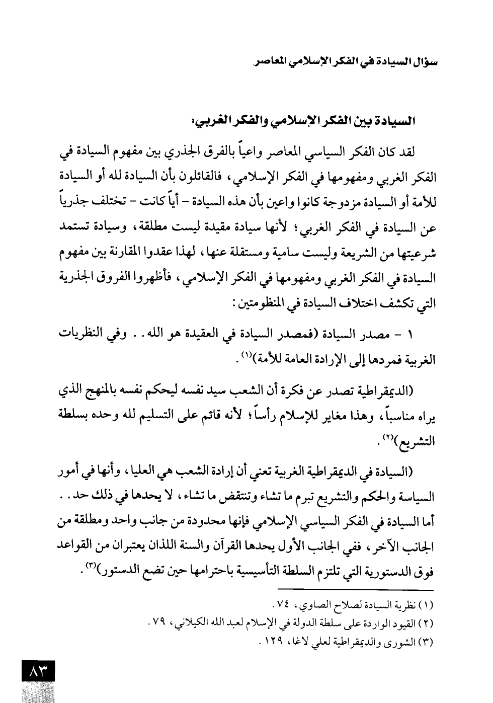 (¬3) الشورى والديمقراطية لعلي لاغا، 129.