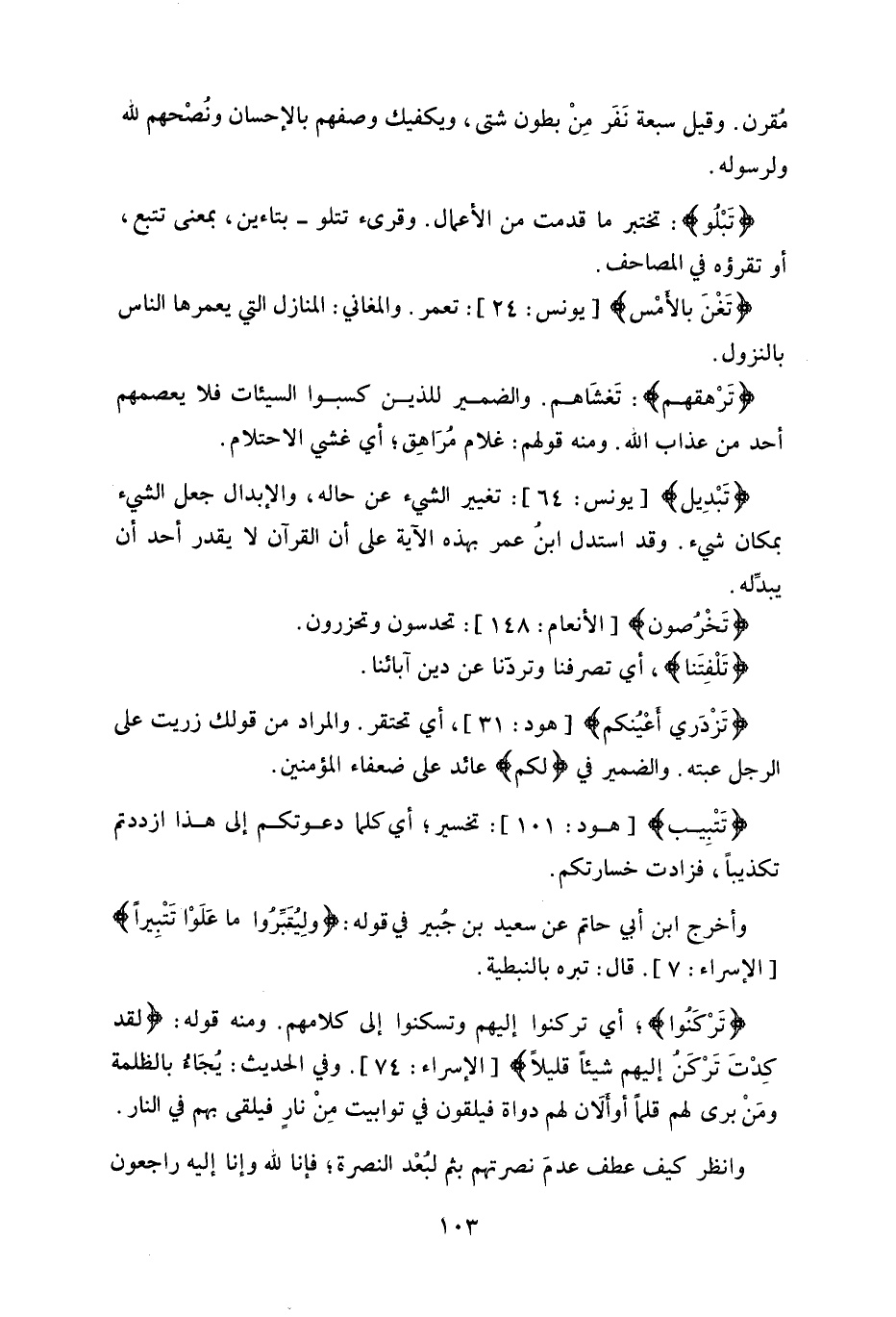 وأخرج ابن أبي حاتم عن سعيد بن خبير في قوله: (ولِيُتبِّروا ما عَلَوْا تَتْبِيراً) .