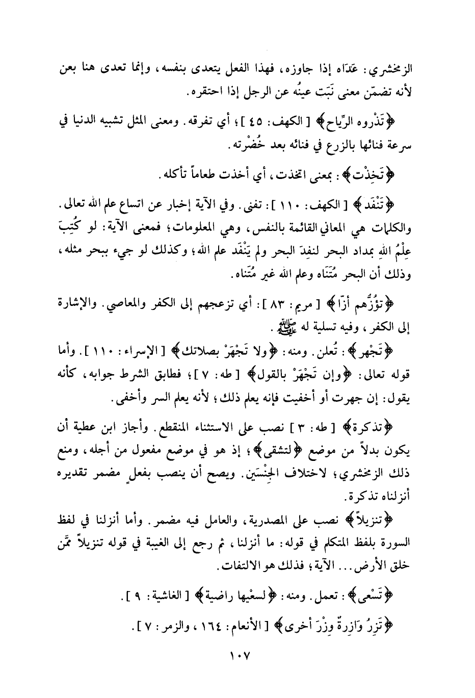 والكلمات هي المعاني القائمة بالنفس، وهي المعلومات، فمعنى الآية: لو كتِبَ عِلْم اللَهِ بمداد البحر لنفِدَ البحر ولم يَنْفَد علم الله، وكذلك لو جيء ببحر مثله، وذلك أن البحر متَنَاه وعلم الله غير متَناه.